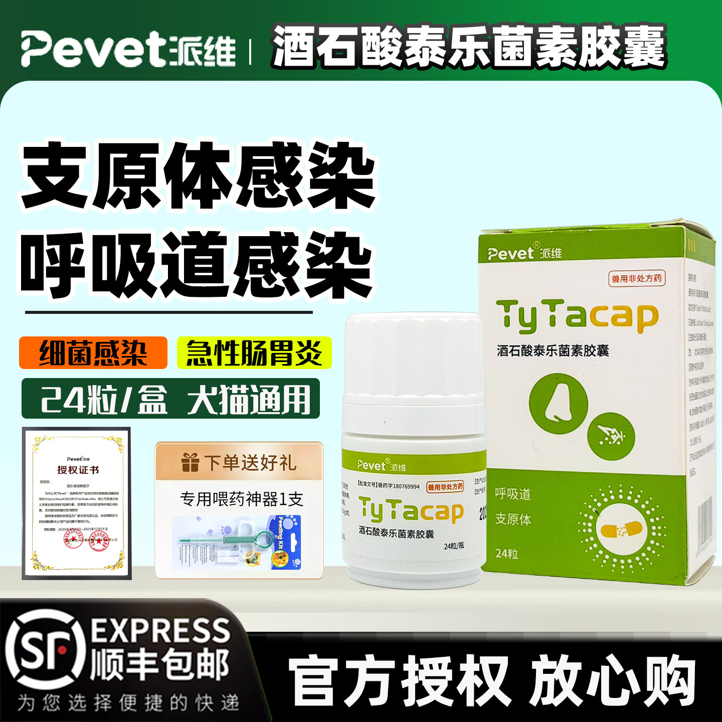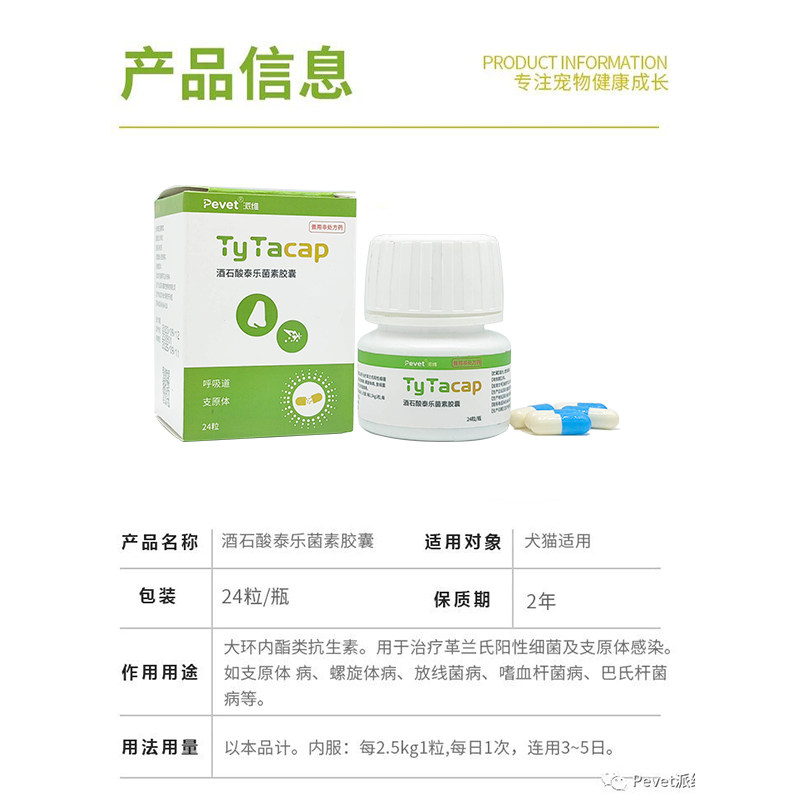 📚 酒石酸泰乐菌素胶囊猫狗肺炎感冒咳嗽猫鼻支宠物支衣原体感染派维