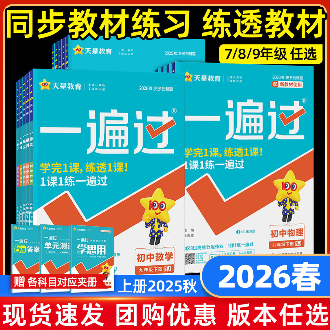 📚 2026春新版一遍过初中八九年级七年级上下册语文数学英语物理化学生物政治历史地理人教版初一二三一边过必刷题同步练习册天星教育
