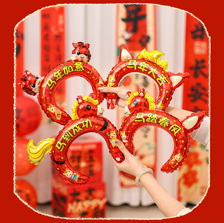 📚 马年新款新年头箍气球喜庆头饰发箍手棒春节戴头上充气摆摊铝膜