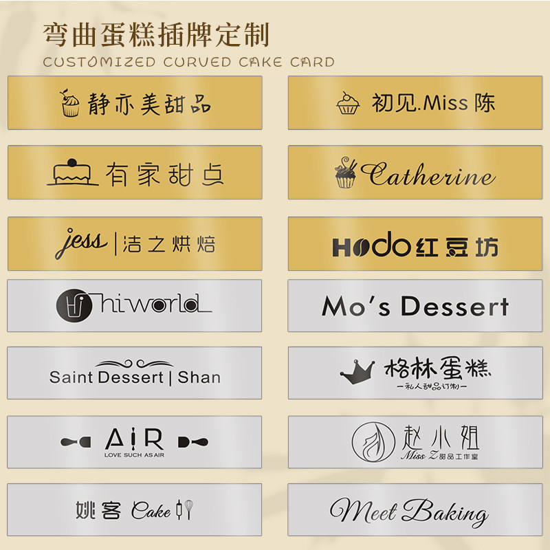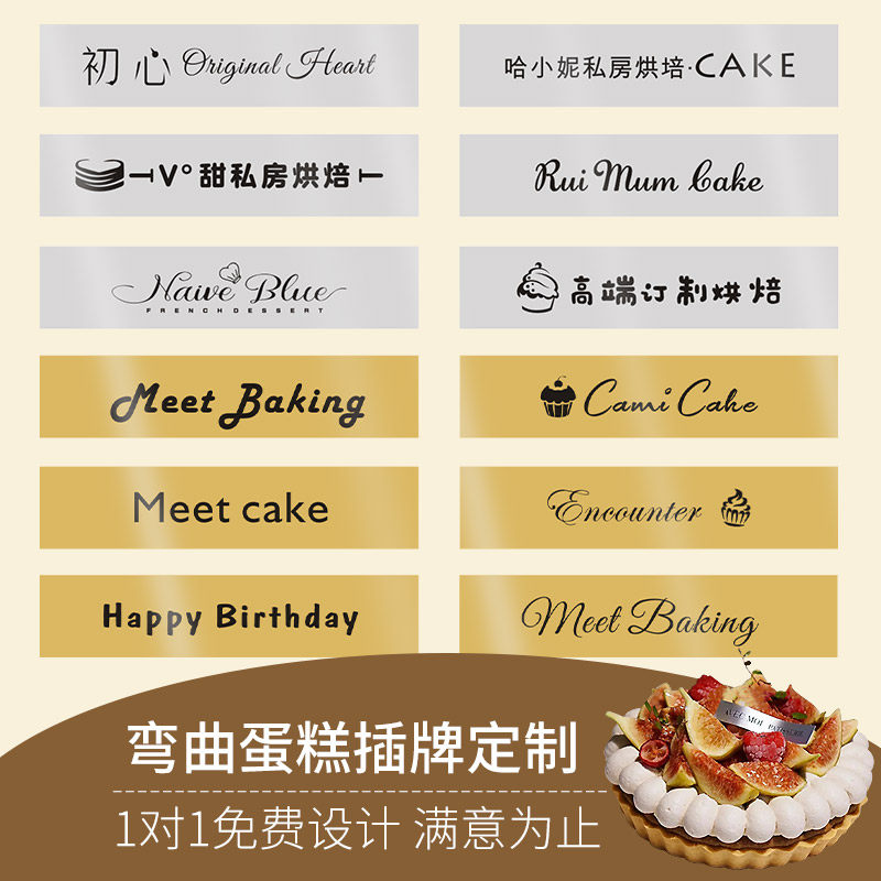 📚 弯曲蛋糕插牌定制logo烘焙店装饰标签插件甜品小卡片插排烫金插卡