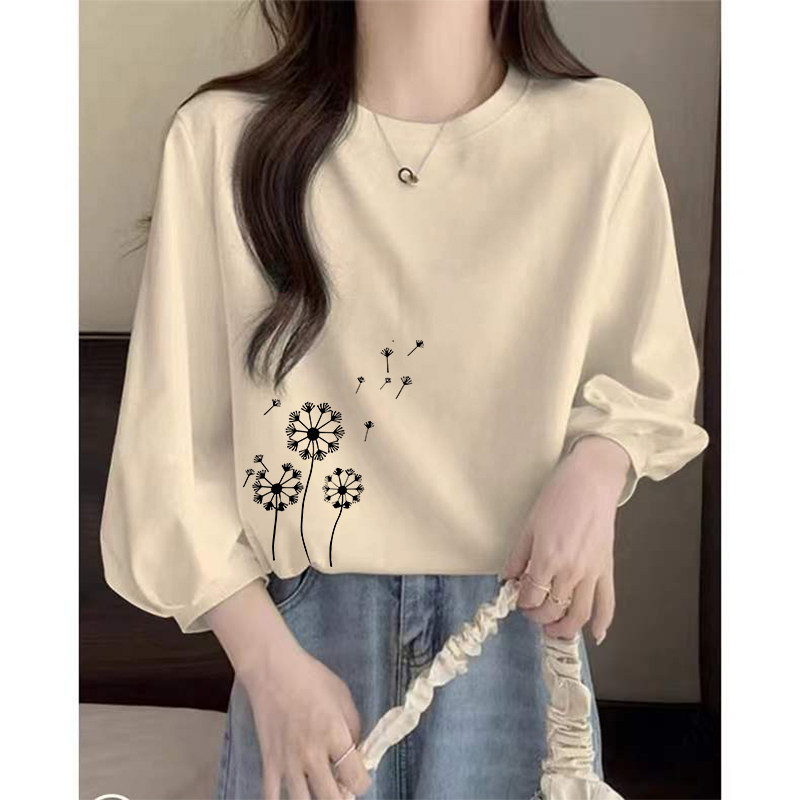 📚 漂亮别致小衫欧货时尚七分袖休闲宽松圆领2024年春秋新款爆款洋气