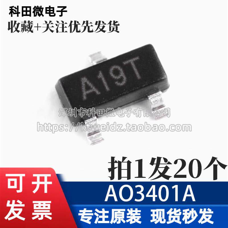 📚 全新原装 AO3401A 丝印A19T 2.8A/30V SOT-23 场效应MOS管(20个