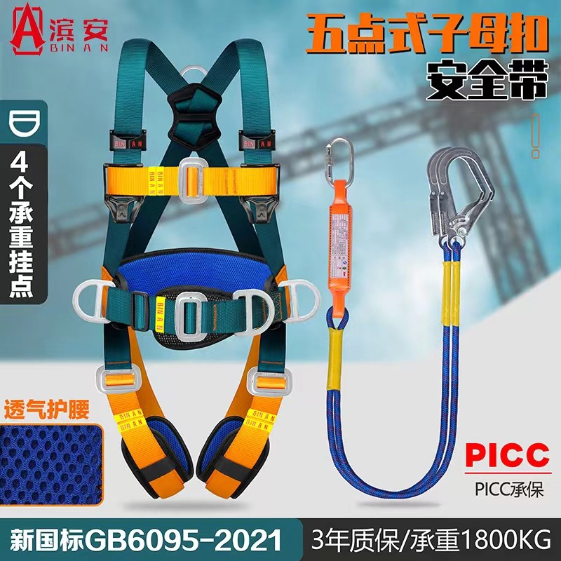 📚 滨安全身5 五点式高空作业安全带登高安全绳套装国标大挂钩保险带