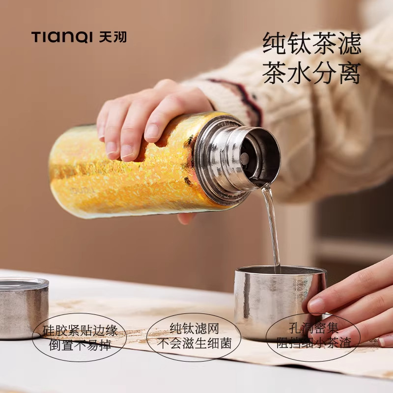 📚 天沏闲庭钛杯纯钛保温杯闷茶杯全钛双层便携水壶泡茶杯高档礼盒装