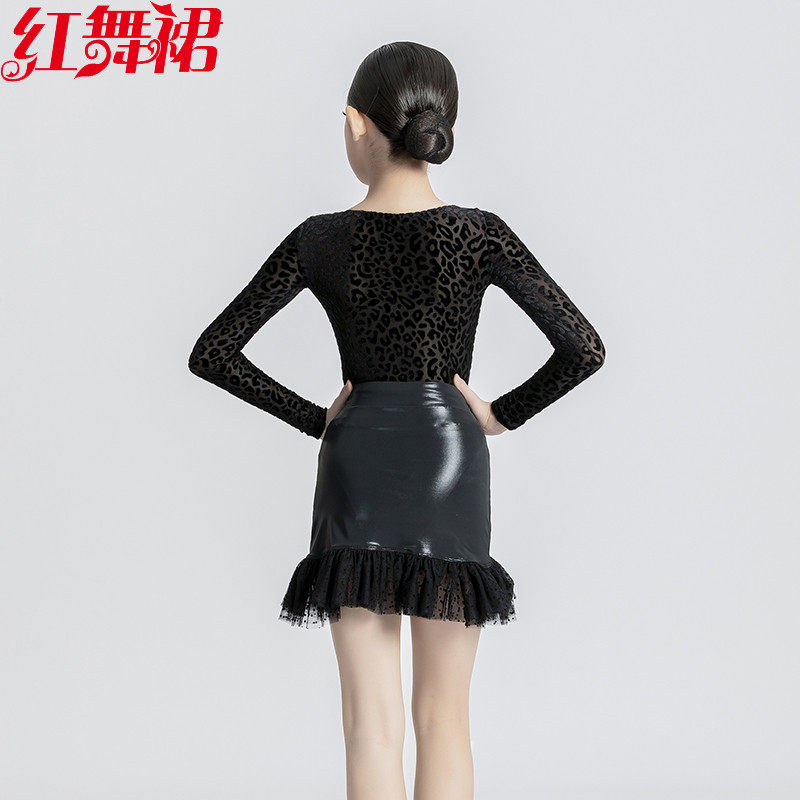 📚 红舞裙秋冬新款儿童舞蹈服拉丁女恰恰伦巴牛仔练功表演服黑色套装