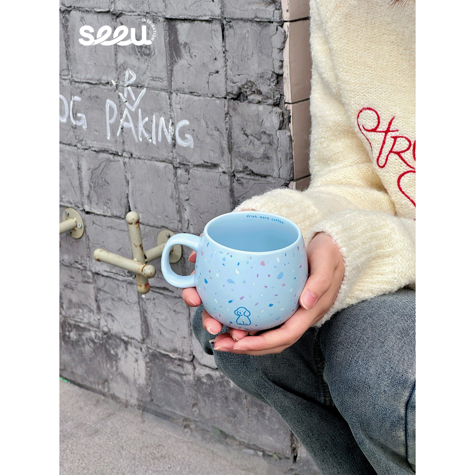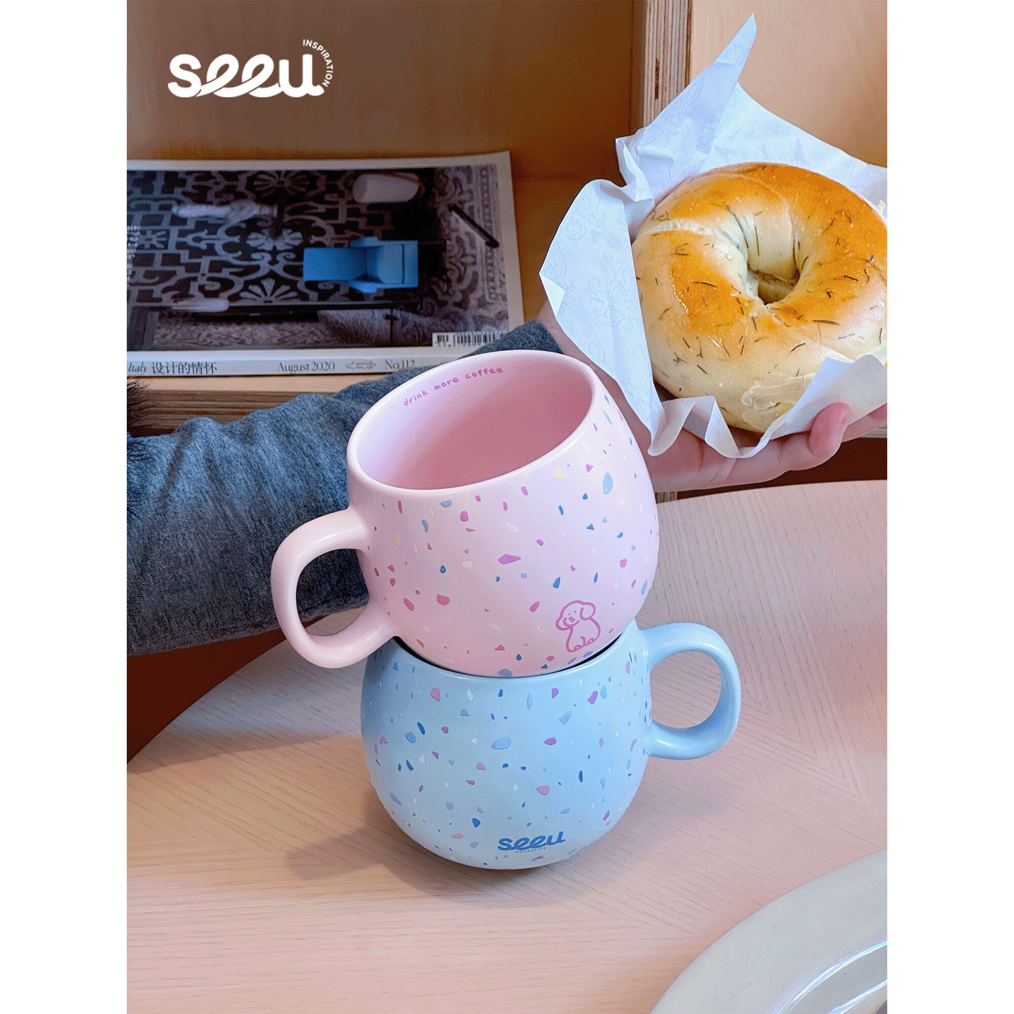 📚 seeu彩蛋杯小狗白瓷马克杯咖啡杯子情侣杯水杯早餐牛奶杯320ml