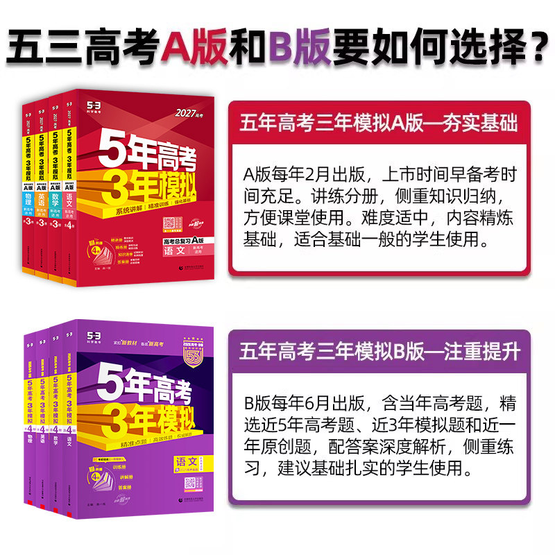 📚 2027新高考五年高考三年模拟53五三高中语文数学英语物理化学生物政治历史地理5年高考3模拟必刷题文理科第一轮高考总复习资料解题