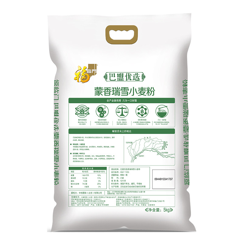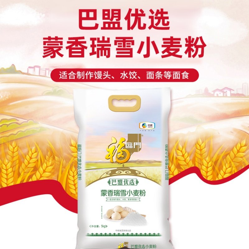 📚 福临门蒙香瑞雪小麦粉5Kg内蒙古面粉巴盟优选中筋白面粉 中粮出品