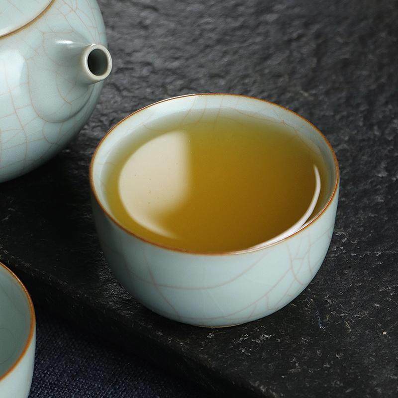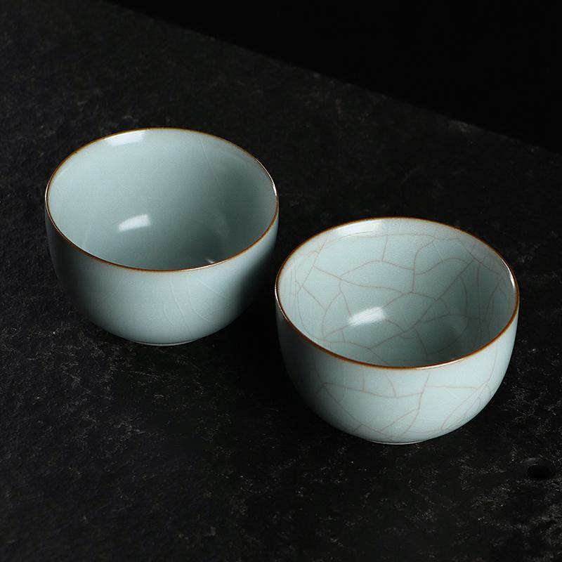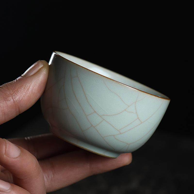📚 清沐堂主 茶养开片天青汝窑禅口杯 冰裂釉家用陶瓷茶具个性品茗杯