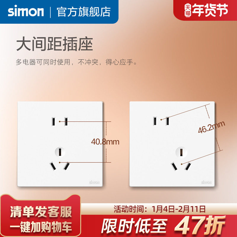 📚 西蒙官方旗舰店空调16A墙壁开关插座五孔10A面板86暗装C57珍珠白