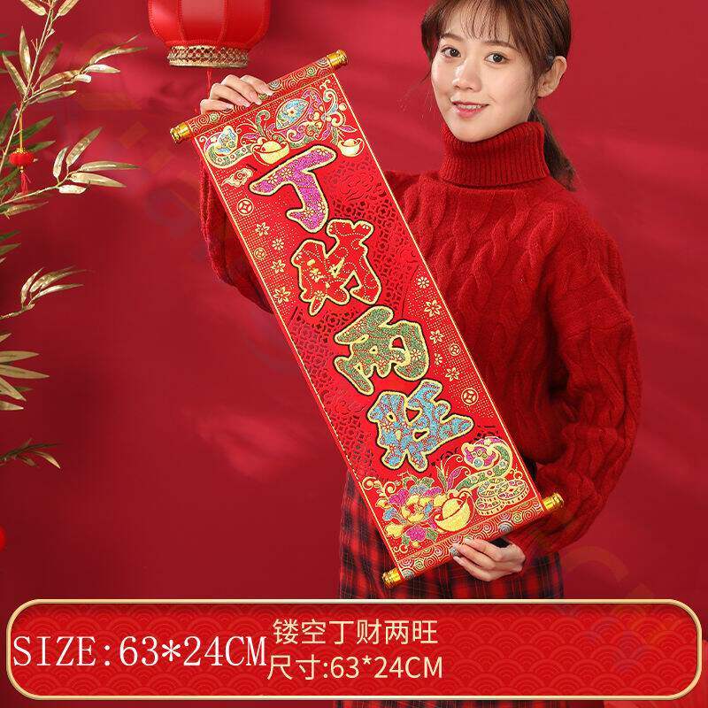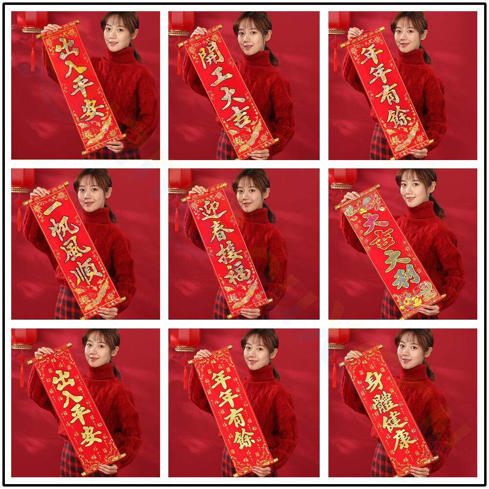 📚 新年喜庆儿童拍照对联绒面舞台表演装饰道具四字卷轴恭喜发财挂联