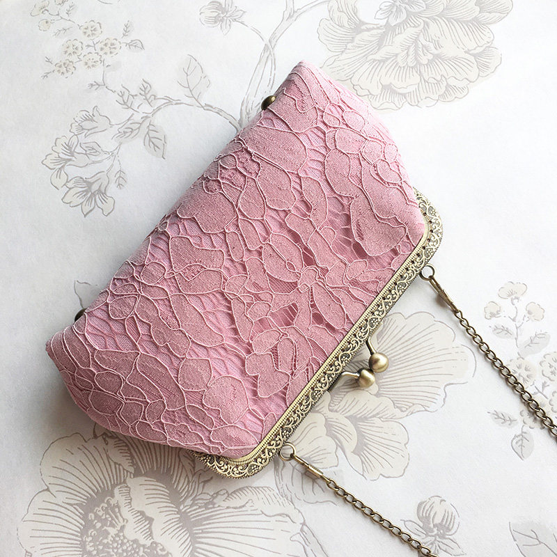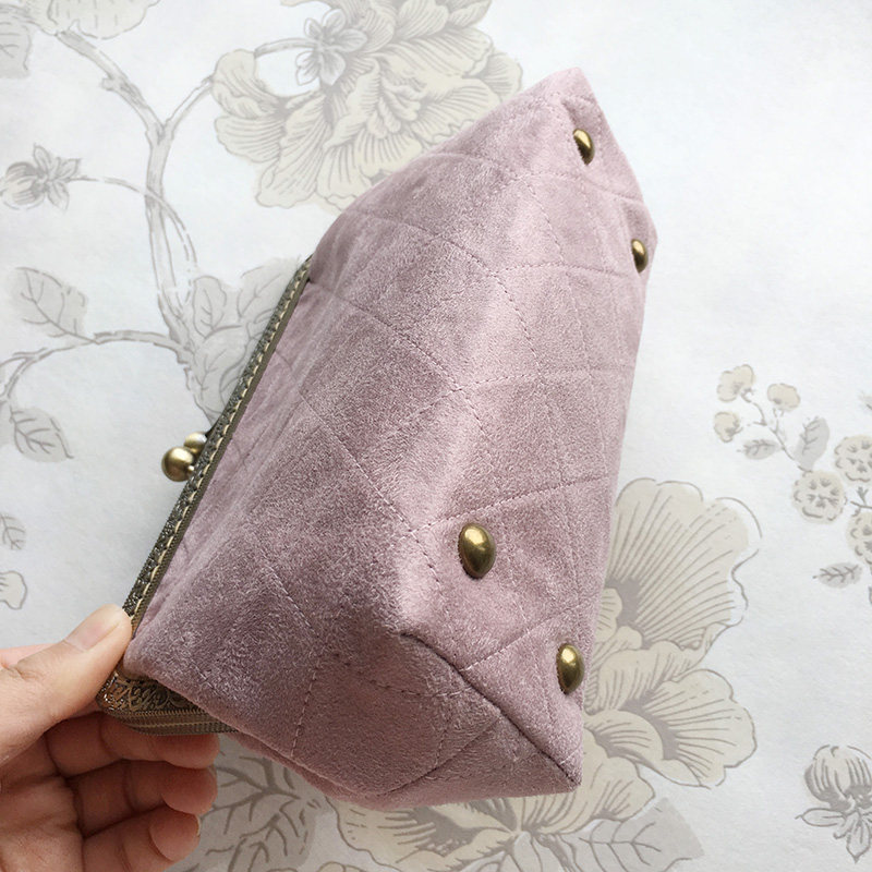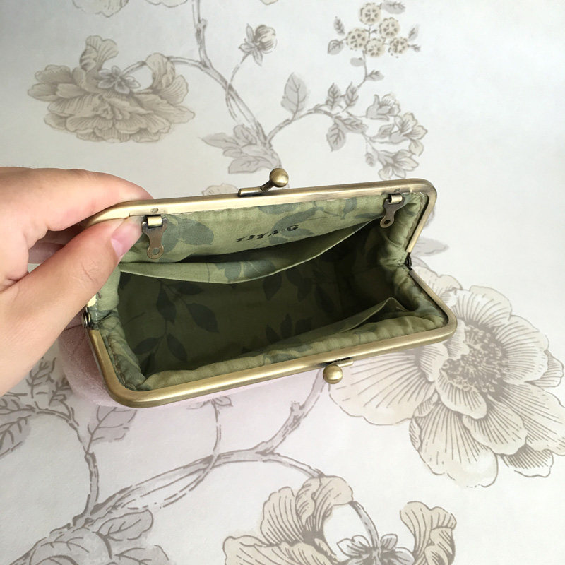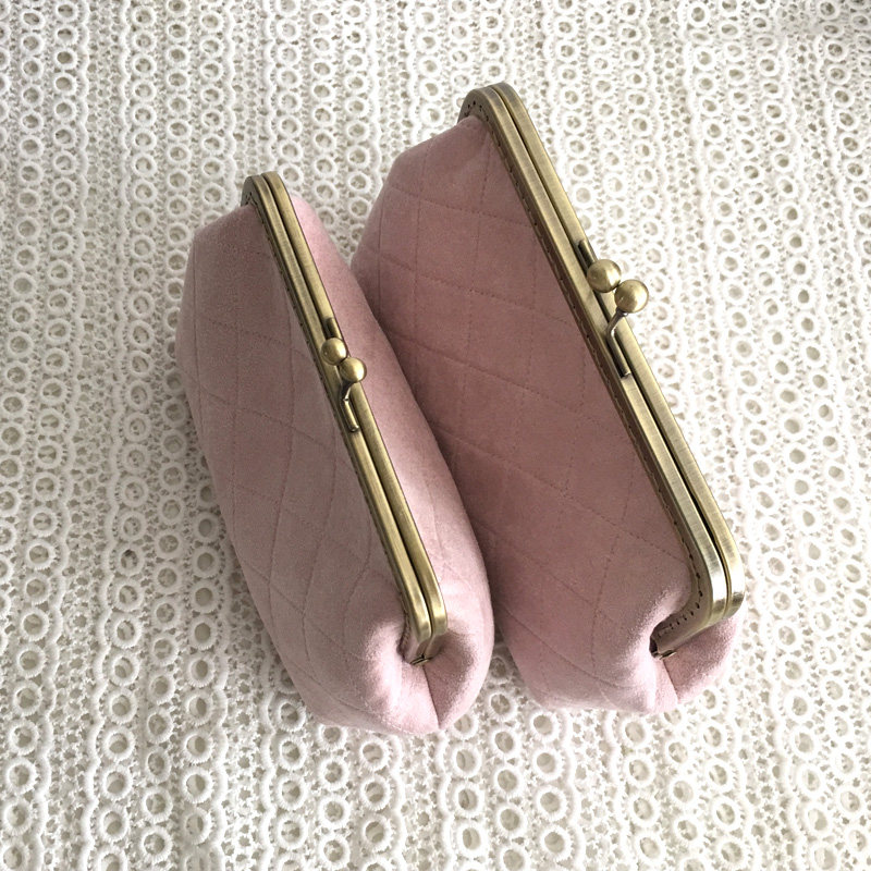 📚 原创纯手工布艺包 豆粉色化妆口金包格子零钱包 成品礼物