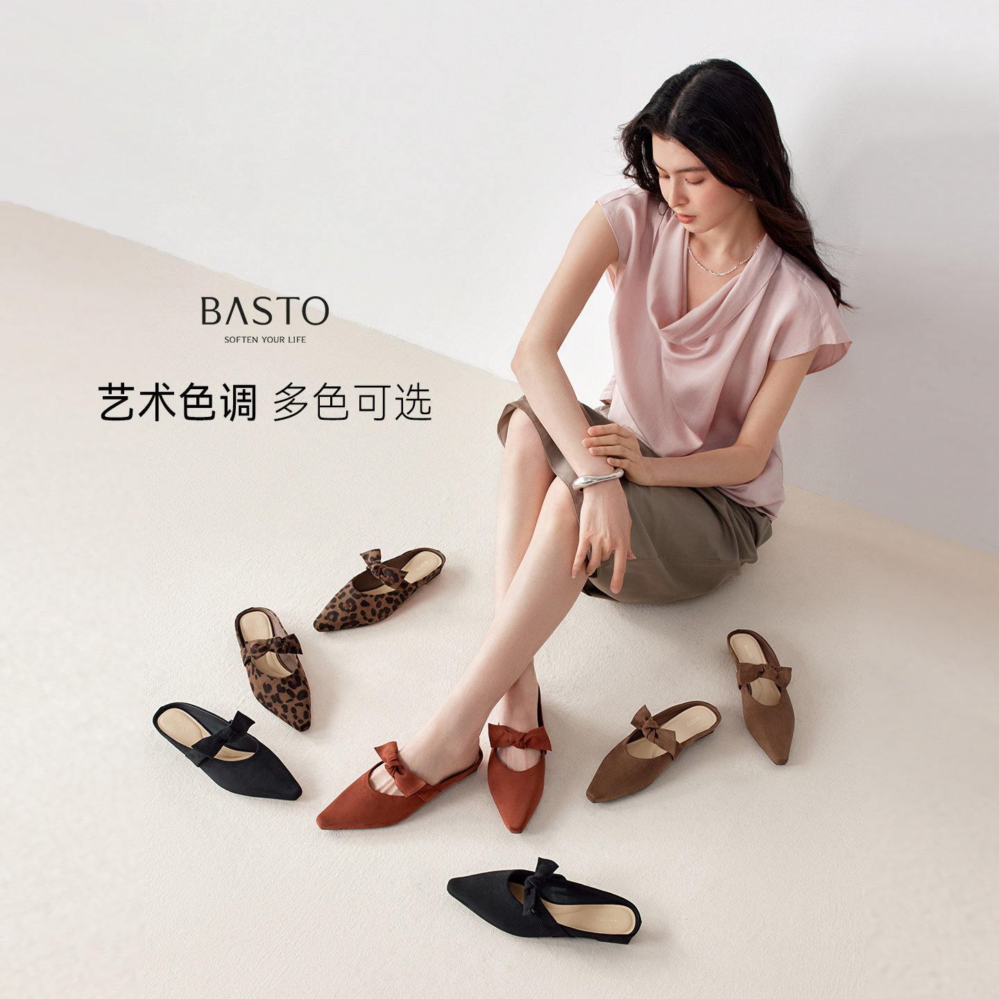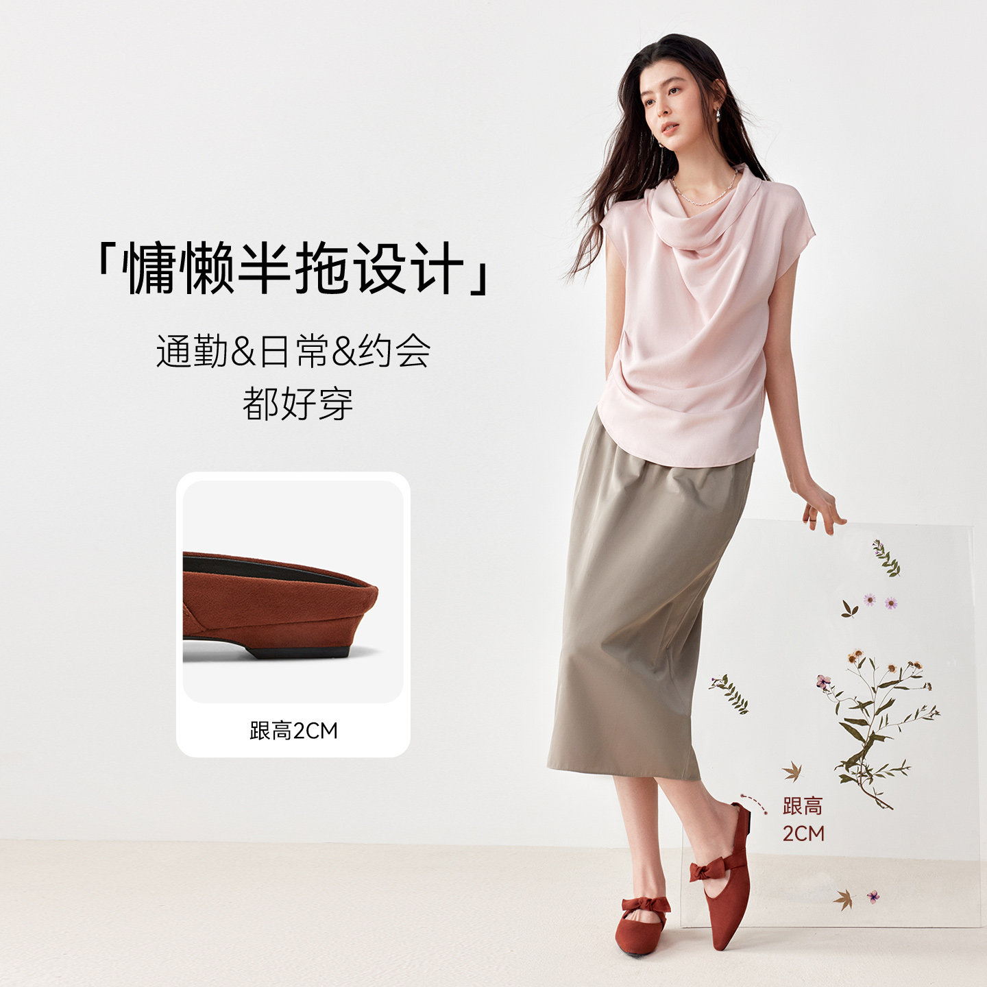 📚 百思图2026夏季新款一脚蹬穆勒拖半拖粗跟外穿包头女拖鞋R6272BH6