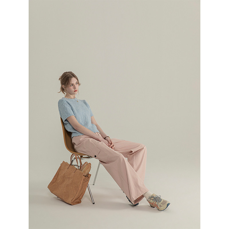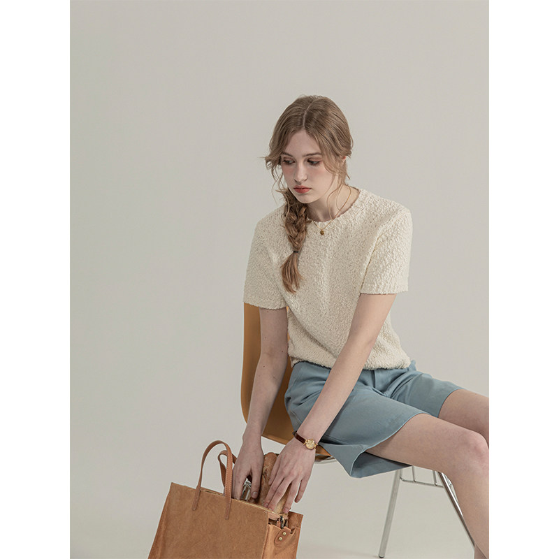 📚 三十三【云际遐想】别致针织短袖女夏季设计感小个子圆领t恤上衣
