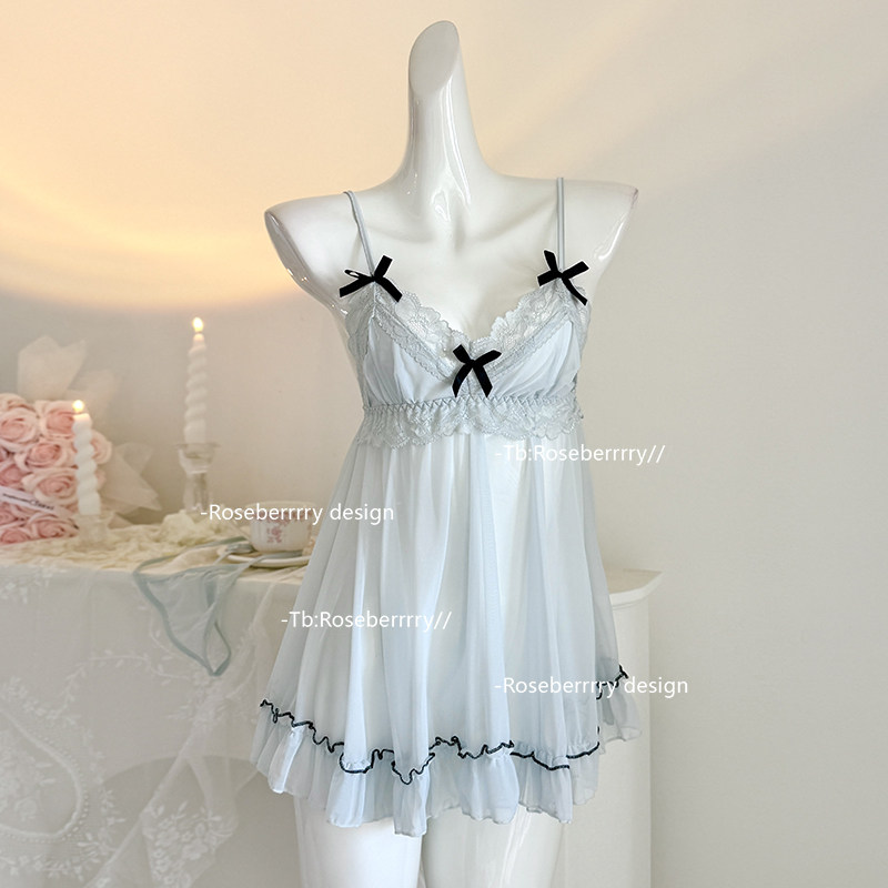 📚 Roseberrrry甜系教主 纯欲风性感吊带睡裙蕾丝网纱甜欲约会裙睡衣