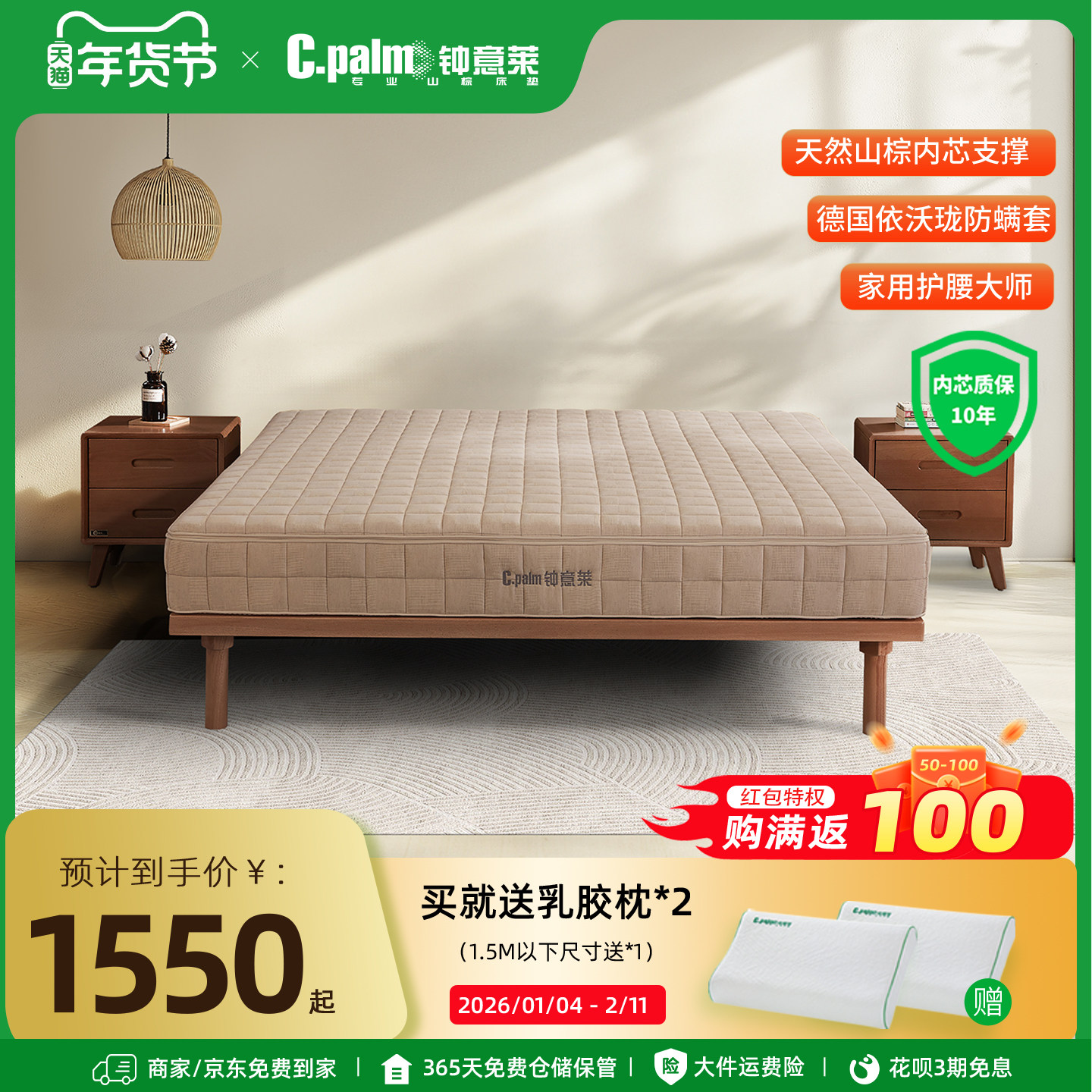 📚 钟意莱全天然山棕床垫家用无胶水护腰透气防螨虫硬垫非椰棕黄麻
