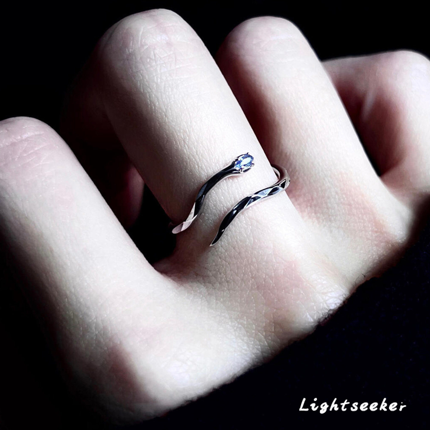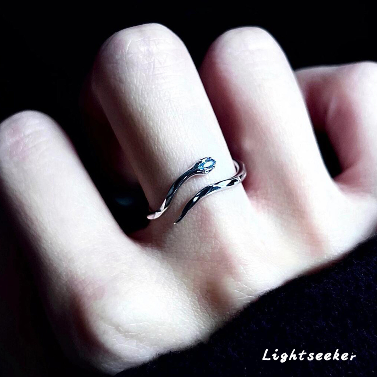 📚 爆闪立体银蛇开口戒指小众设计轻奢高级感指环2025新款爆款食指戒