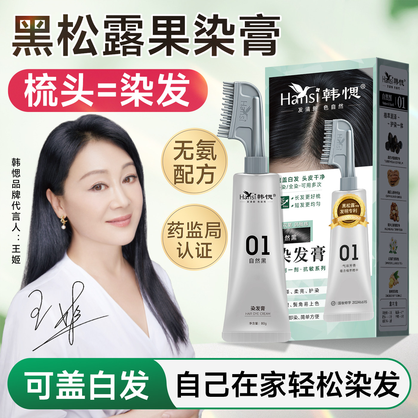 📚 韩愢染发膏染发剂果染膏植物纯遮盖白发自然黑色染发梳韩思偲正品
