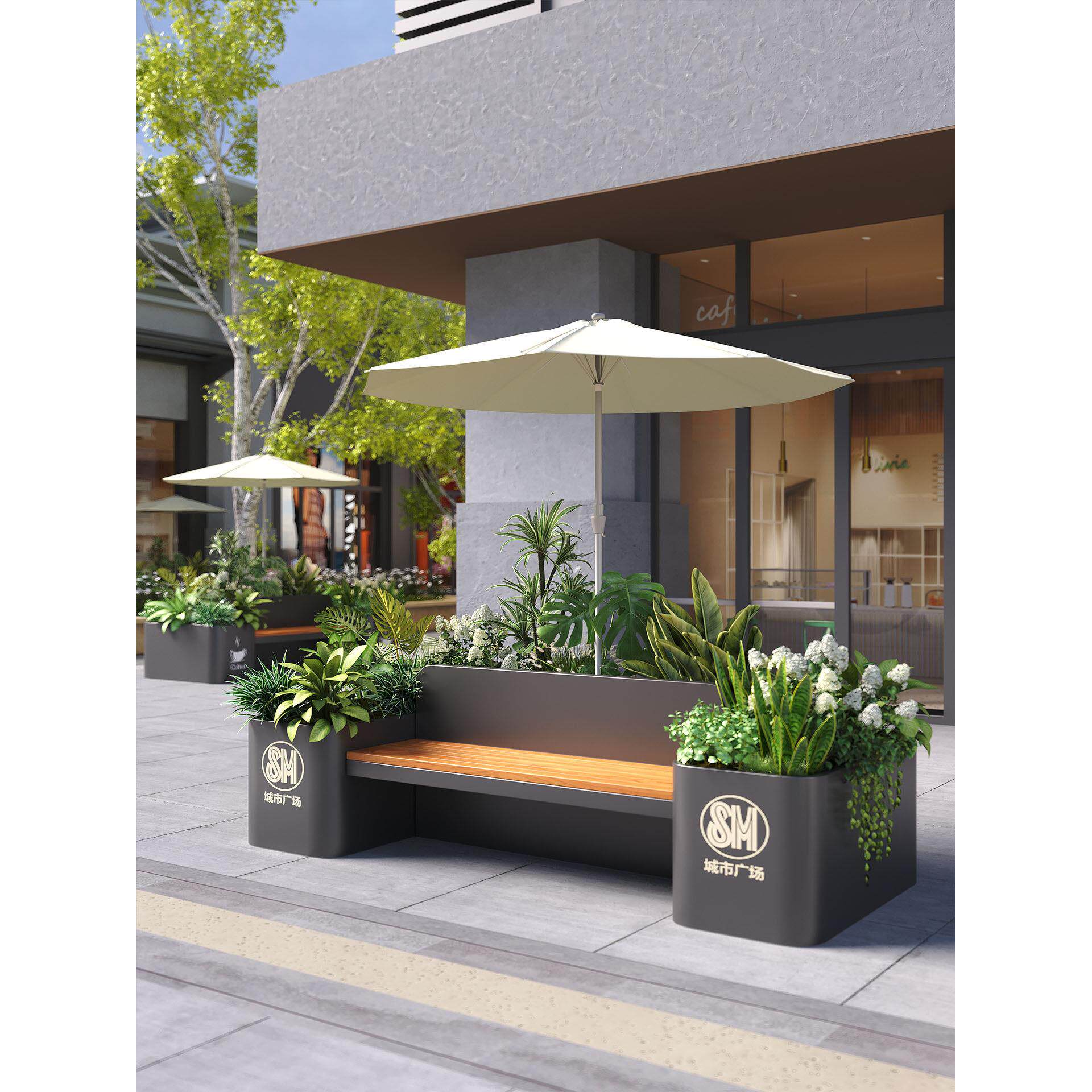 📚 不锈钢花箱坐凳组合户外围栏坐凳花槽铁艺隔断景观种植箱成品定制