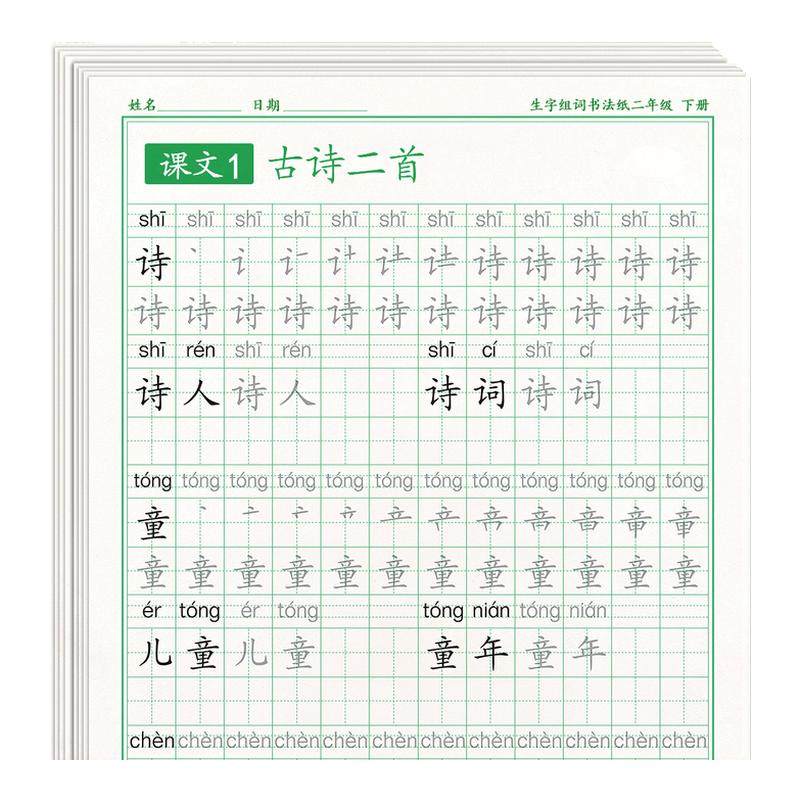 📚 二年级下册练字帖语文同步上册笔画笔顺字帖小学生人教版练字每日一练硬笔书法楷书练字本儿童写字帖练习生字摹写本描红教材专用贴