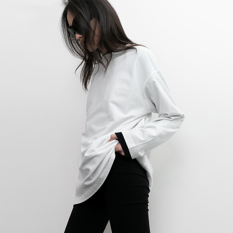📚 FILGood白色长袖T恤 圆领纯棉宽松版型 设计偏长轻松叠穿FG01T02