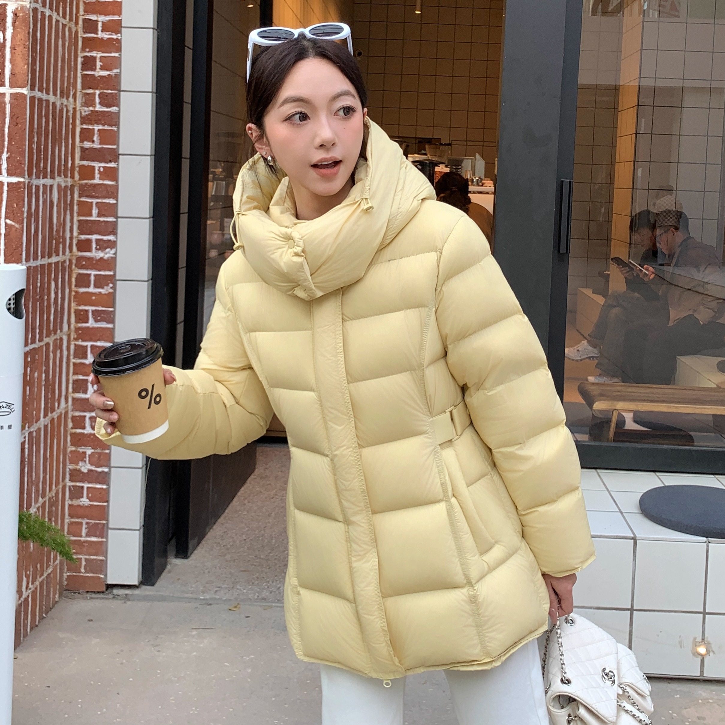 📚 新国标95白鸭绒女泡芙韩版小个子修身显瘦小蛮腰连帽中长款羽绒服