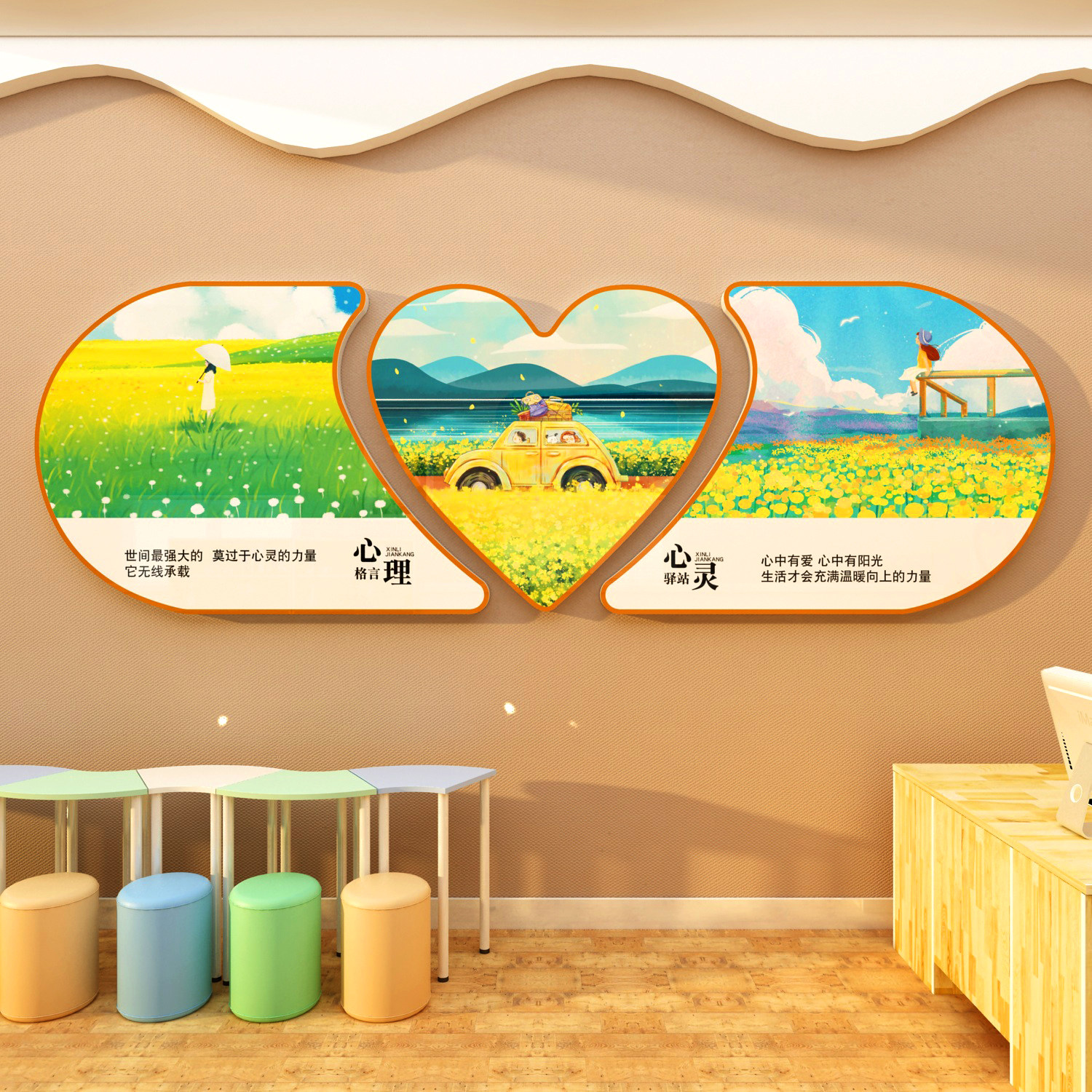 📚 心理咨询室布置挂图心灵驿站装饰画疗愈空间健康辅导文化墙面贴纸