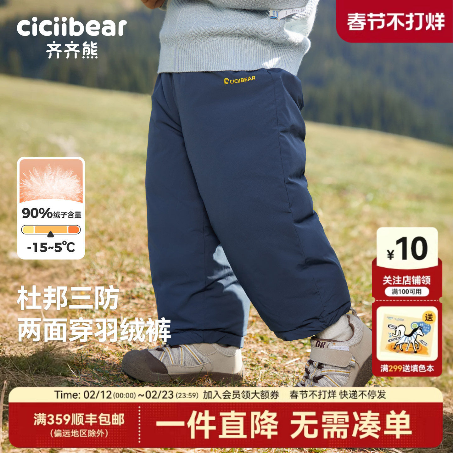 📚 [三防两面穿]齐齐熊宝宝羽绒裤男童冬装保暖裤子儿童防寒裤外穿冬