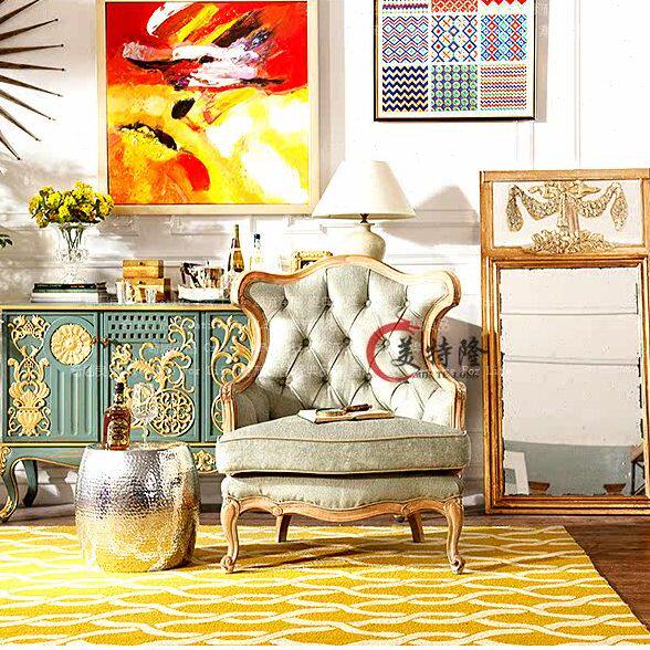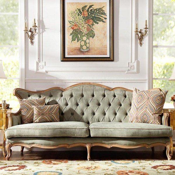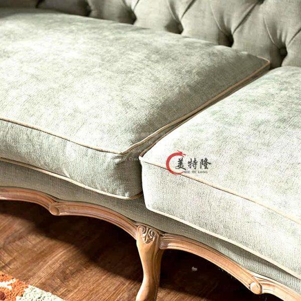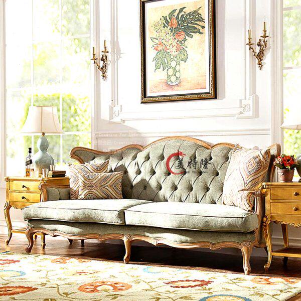 📚 欧式新古典雕花布艺实木三人沙发 法式复古拉扣麻布会所沙发