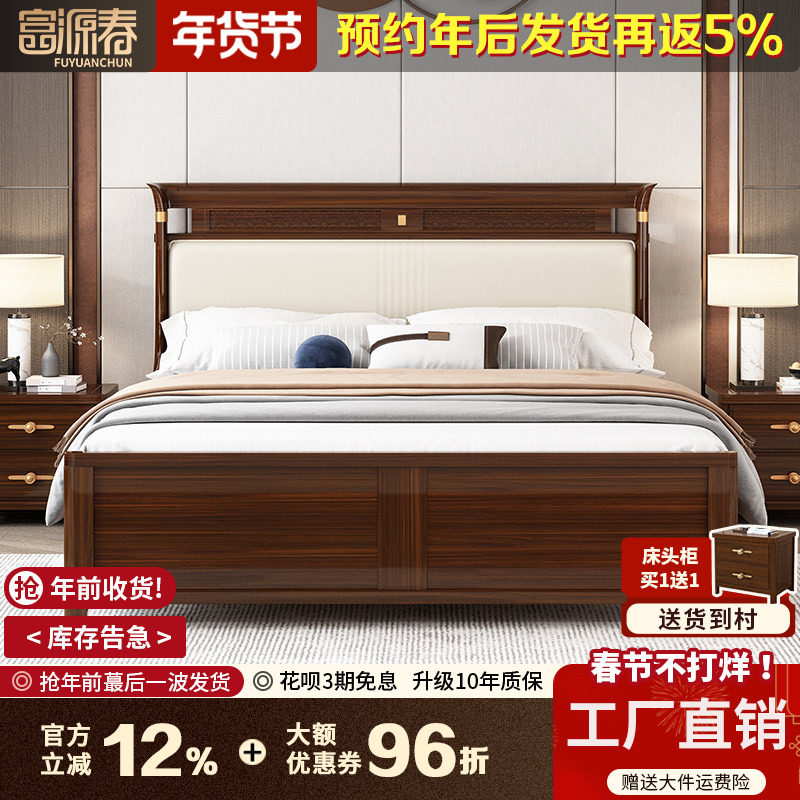 📚 新中式乌金木床主卧高端大气实木真皮婚床2米x2米2大床新中式家具