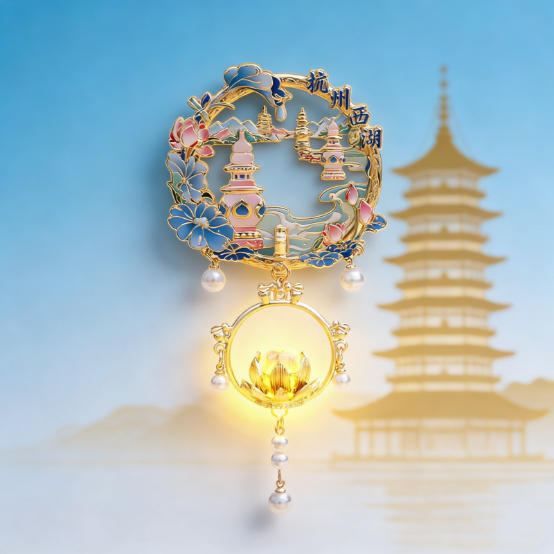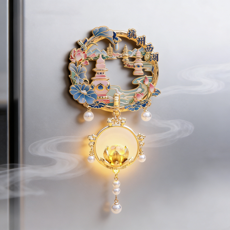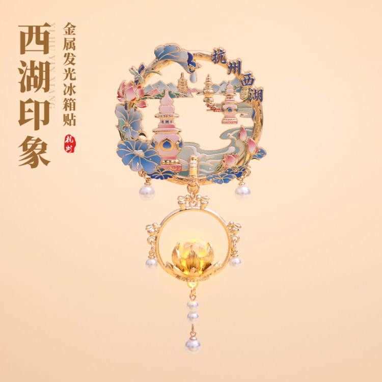 📚 杭州西湖印象文创冰箱贴三潭印月雷峰塔发光灯笼特色金属创意礼物