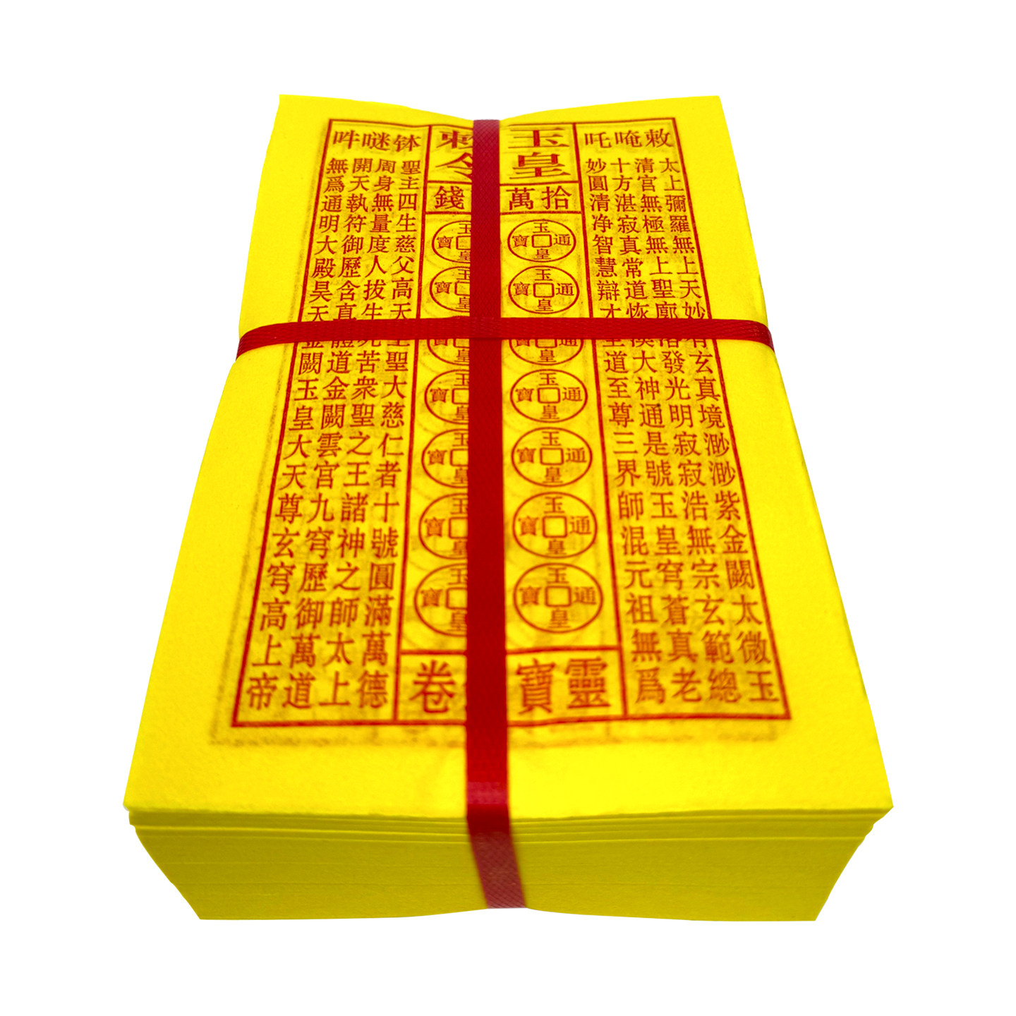 📚 加厚通用玉皇钱玉皇一万贯钱手工朱砂油墨印灵宝钱通宝纸纸灵钱卷通布施黄纸含印整捆批发元宝寒衣节清明折纸