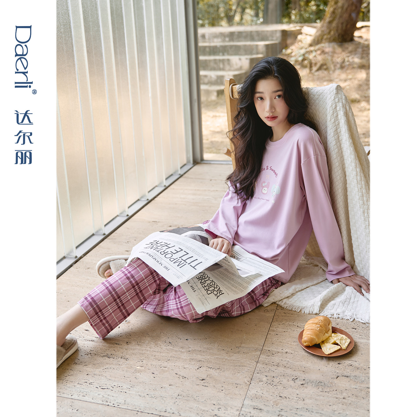 📚 达尔丽柔软睡衣女秋冬纯棉长袖2026新款格子卡通圆领家居服厚套装