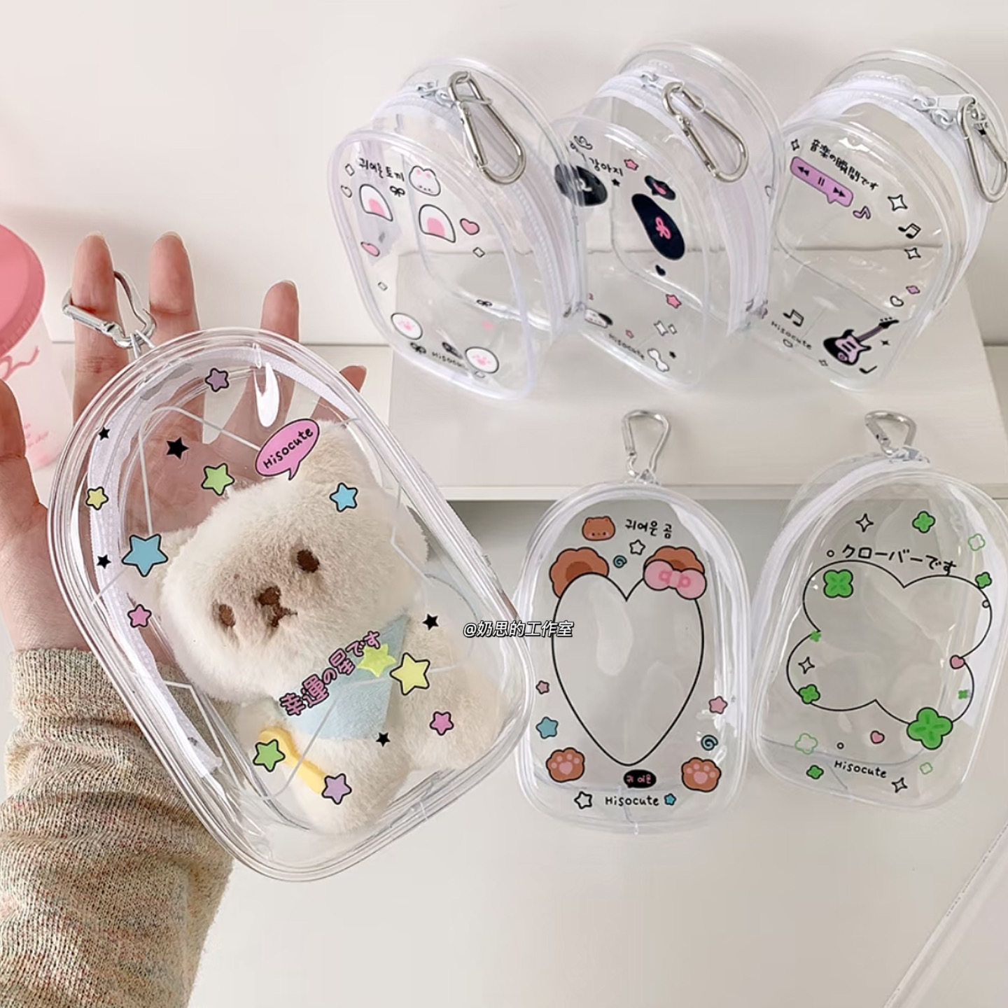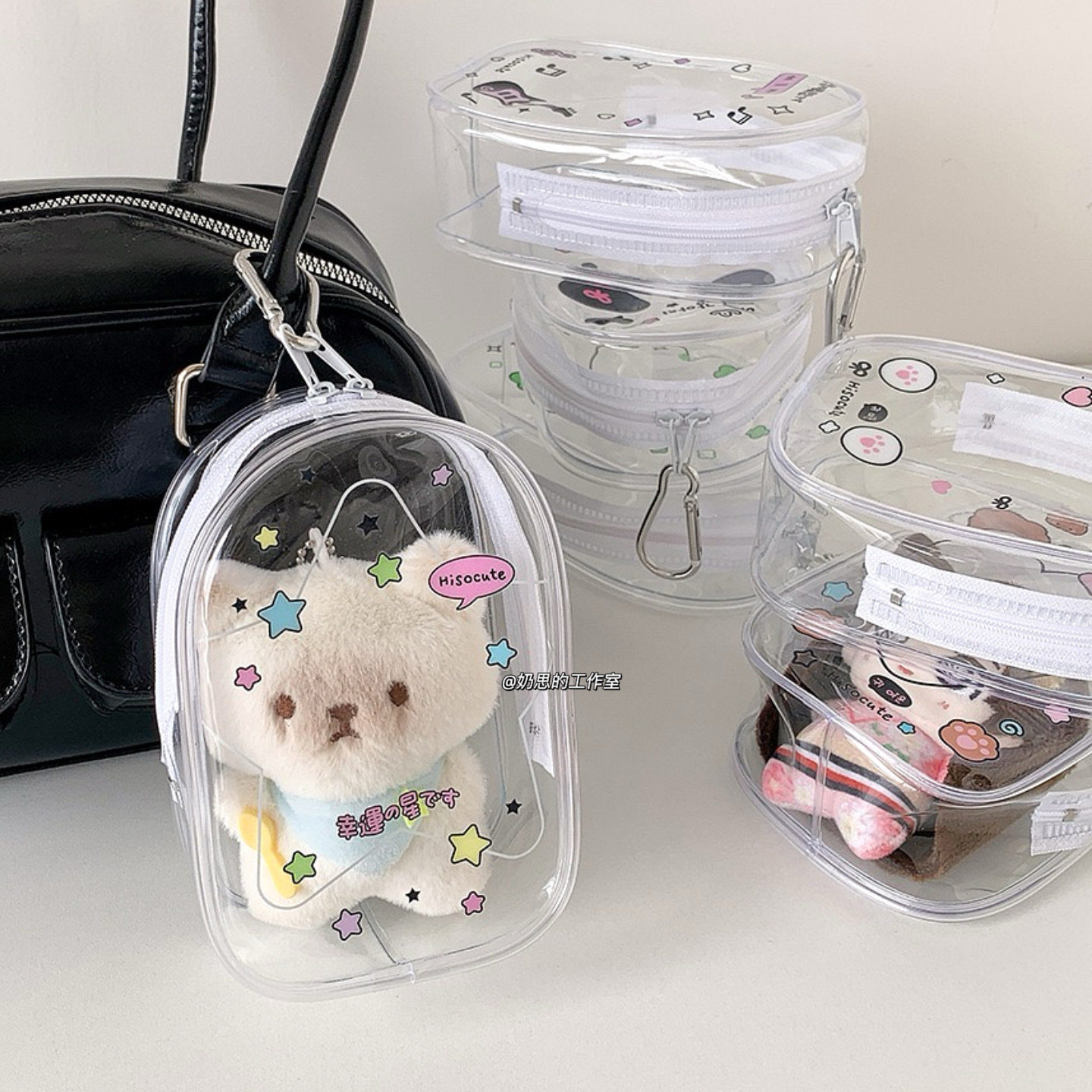 📚 卡通可爱10cm娃包透明遛娃包自嘲熊棉花娃娃公仔展示外出防尘收纳