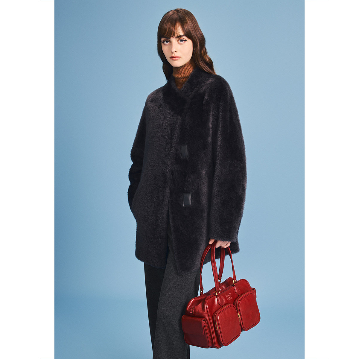 📚 诗篇专选立领宽松皮毛一体皮草外套配皮腰带2026春季新款