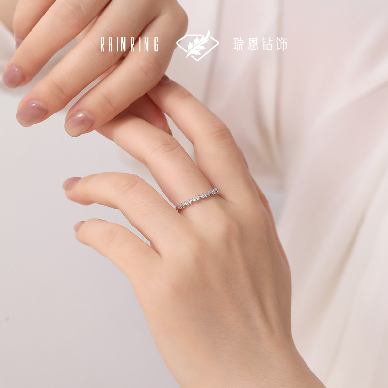 📚 瑞恩18k金天然真钻女戒戒指钻石排镶钻戒轻奢情人节礼物新年礼