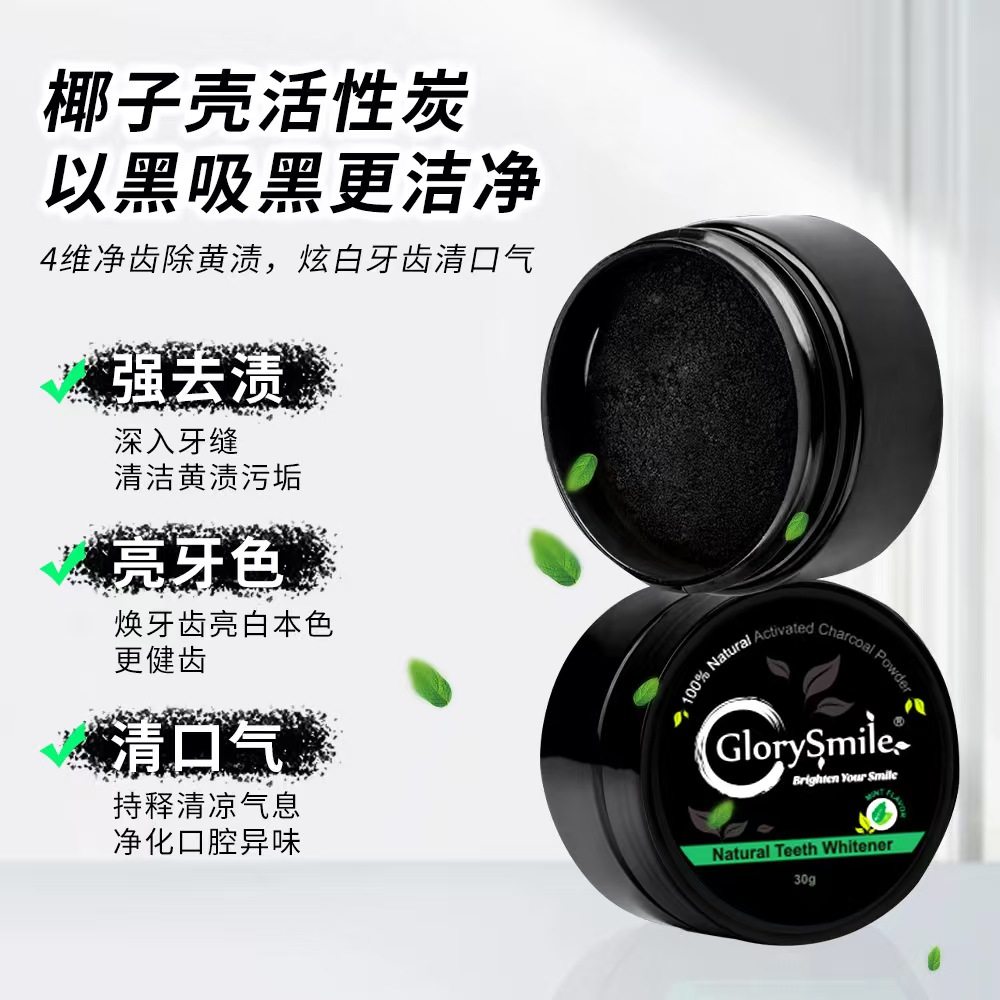 📚 竹炭牙粉薄荷味去牙黄烟渍口臭椰壳活性炭TeethWhitening牙齿刷白