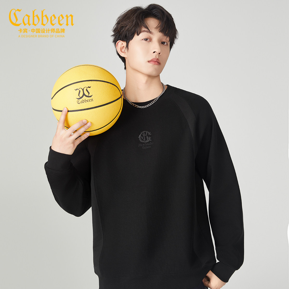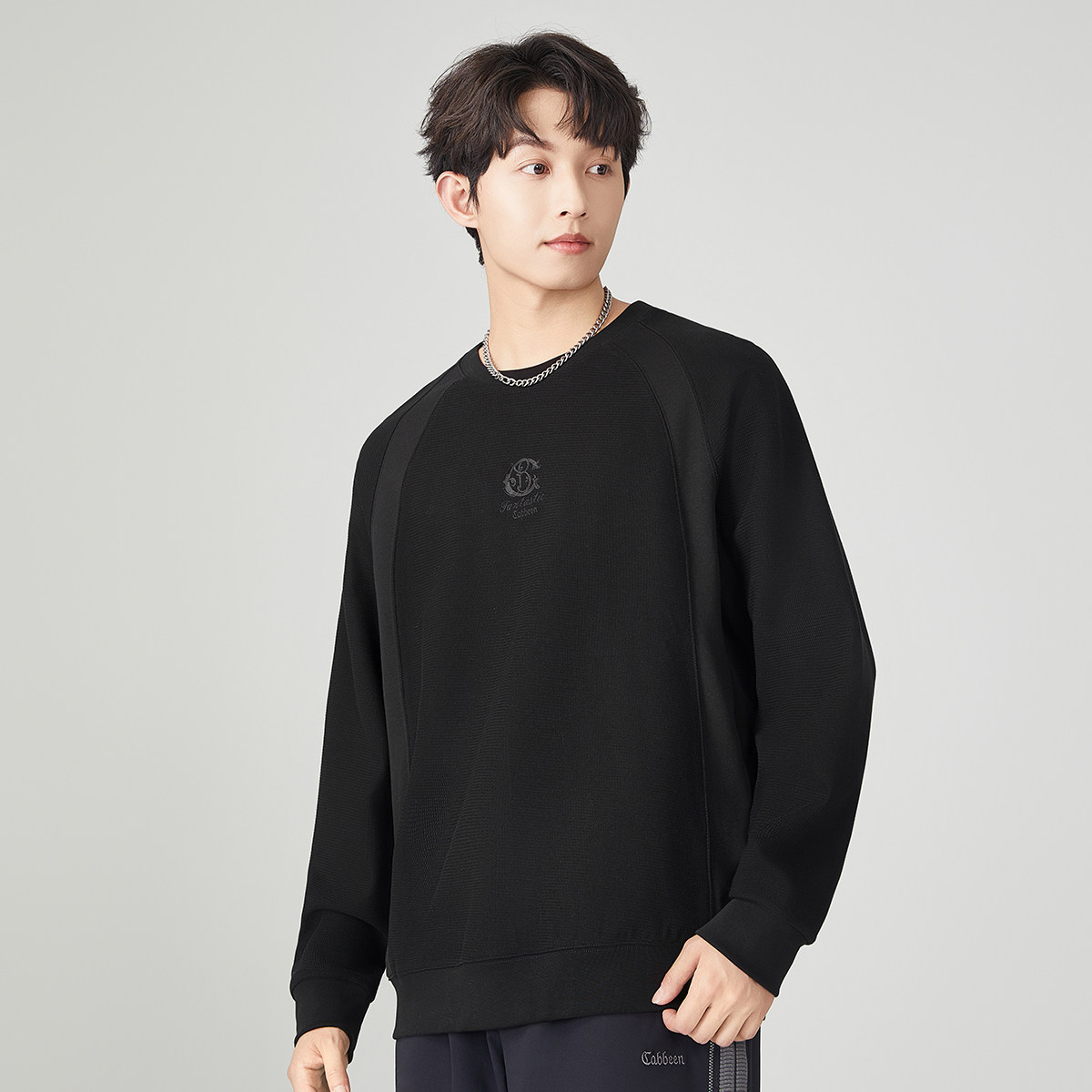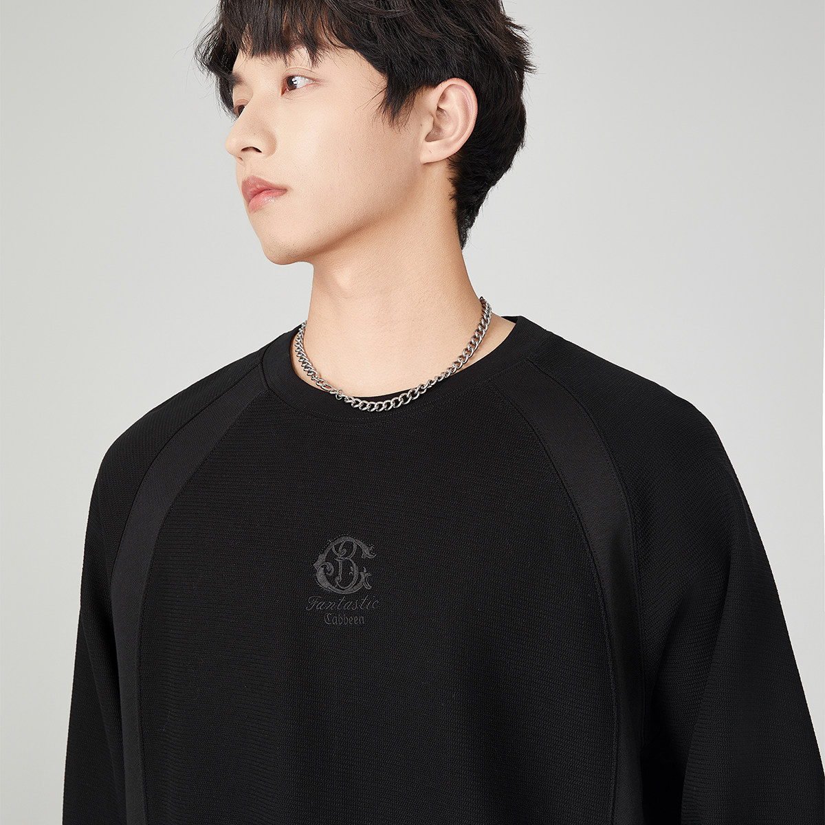 📚 【拼接结构】卡宾宽松落肩卫衣男秋季休闲百搭刺绣黑潮牌圆领长袖