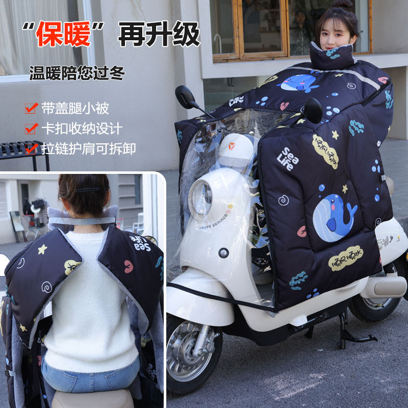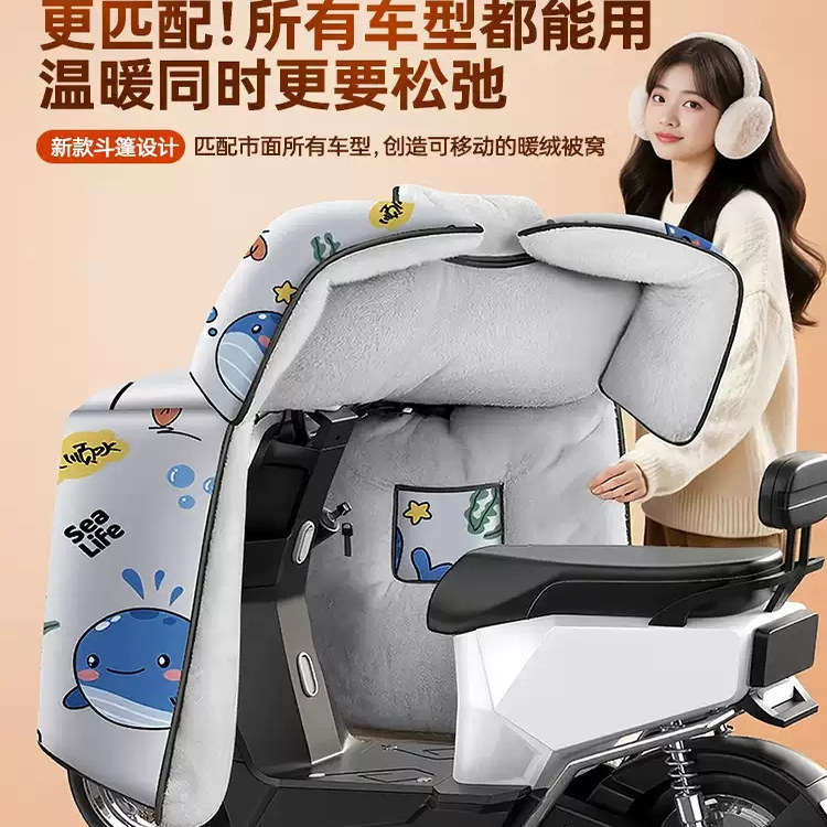 📚 旅伴行电动车斗篷式冬季挡风被防雨雪加绒厚护腿小被保暖防冻加宽