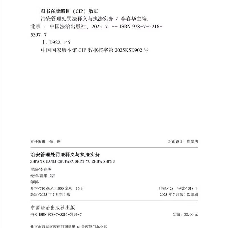 📚 2025年新修订 治安管理处罚法释义与执法实务 中国人民公安大学治安学专家 李春华 主编 中国法治出版社 9787521653977