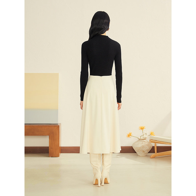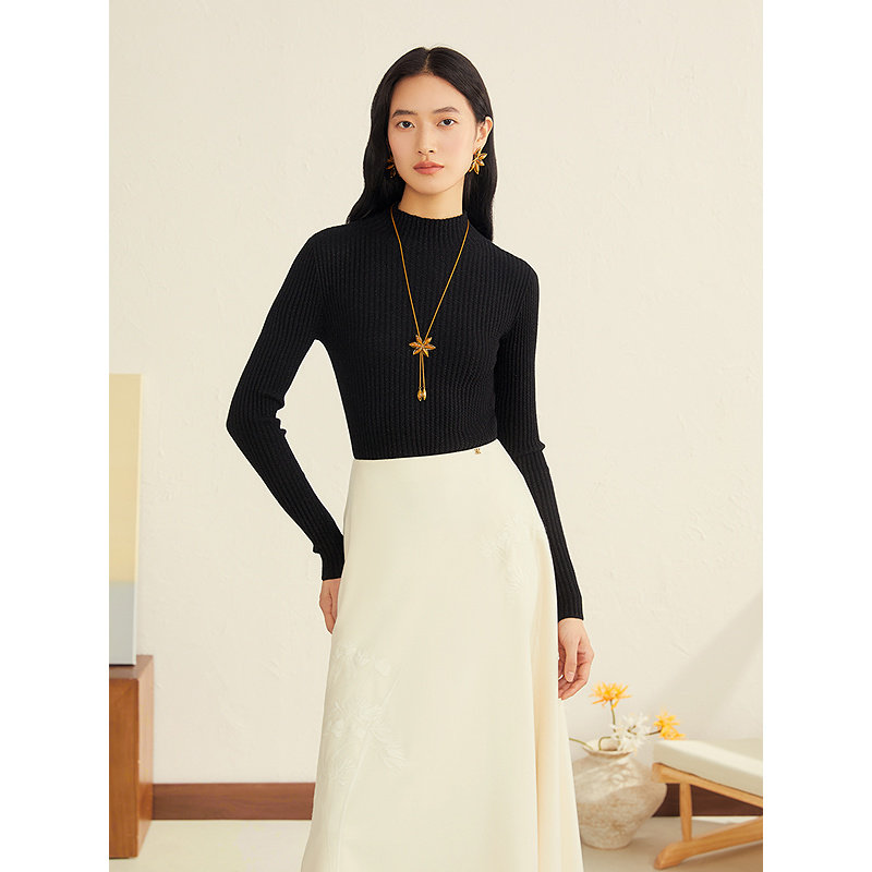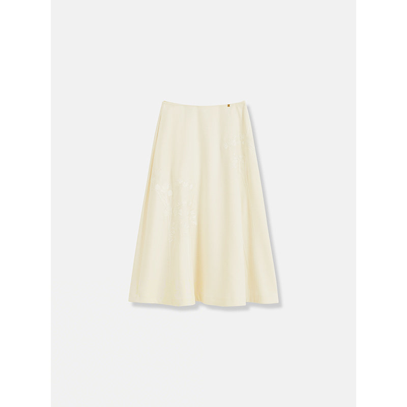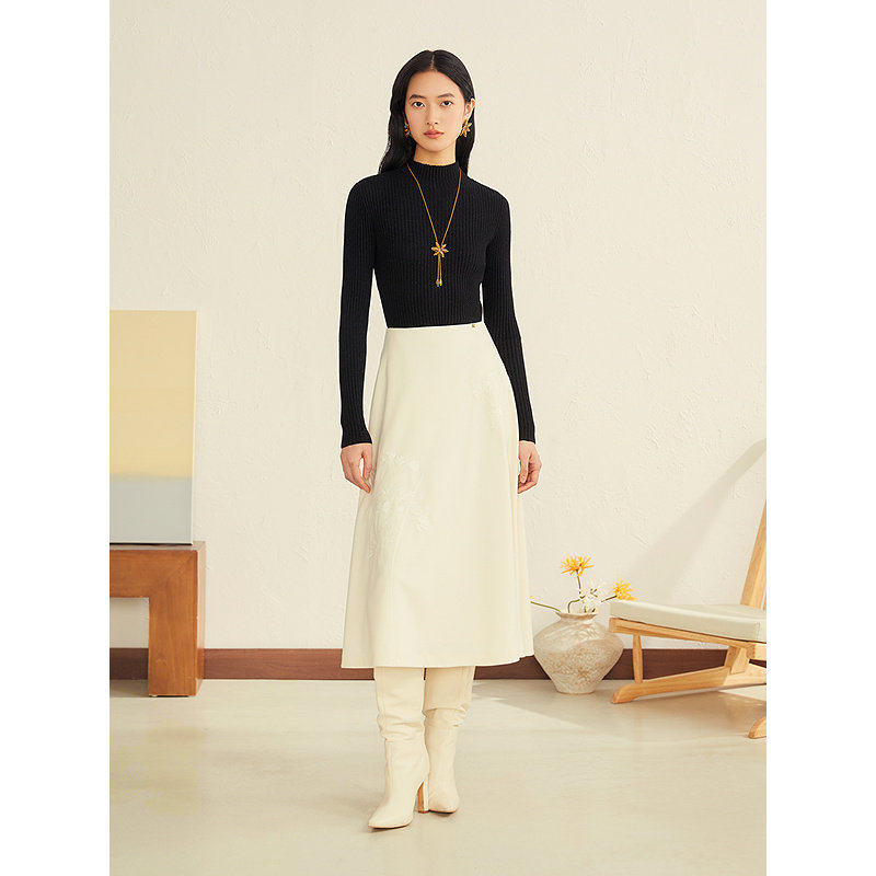 📚 YINER音儿女装冬季法式醋酸羊毛混纺紫锥菊种子绣花A摆半身裙