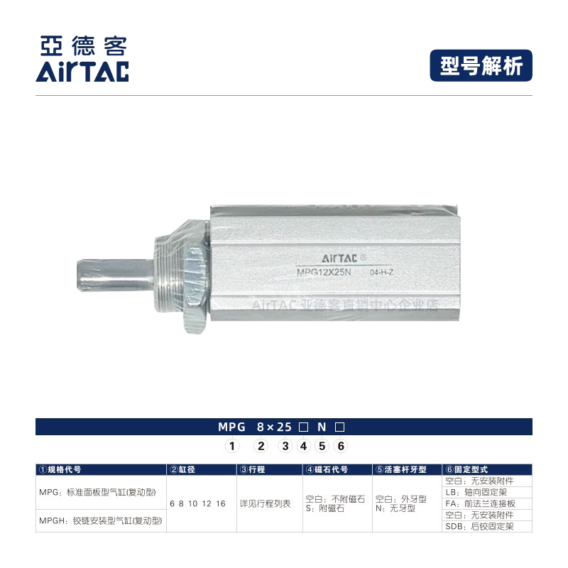 📚 AirTAC/亚德客标准面板型气缸 MPG8缸5X15X20X25X30X35X40N无牙型