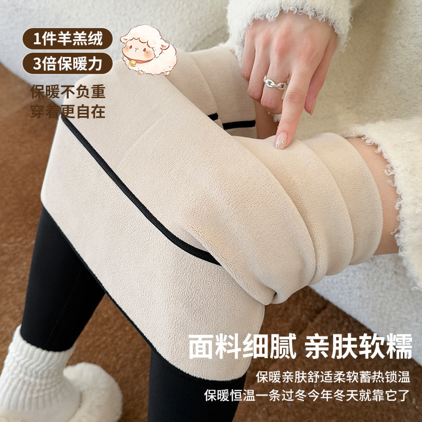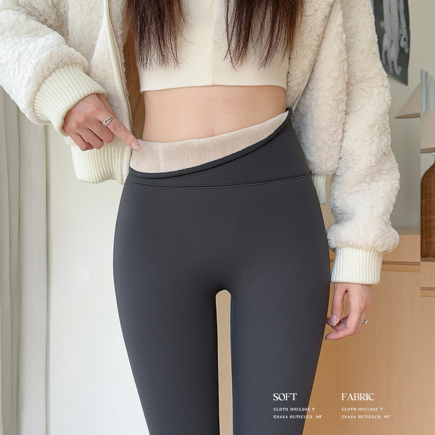 📚 秋冬加厚羊羔绒椰椰裤高腰收腹保暖裤九分打底裤女外穿紧身健美裤