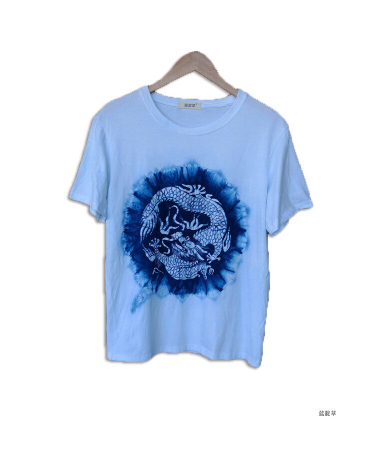 📚 蜡染T恤定制龙纹手工植物染蓝染非遗工艺文艺文创活动礼品定做