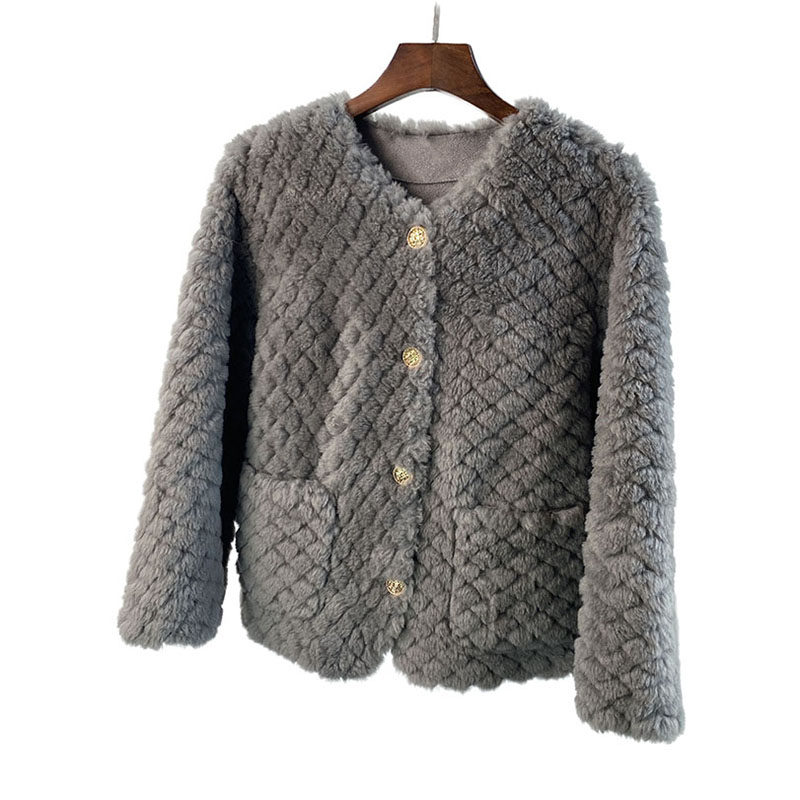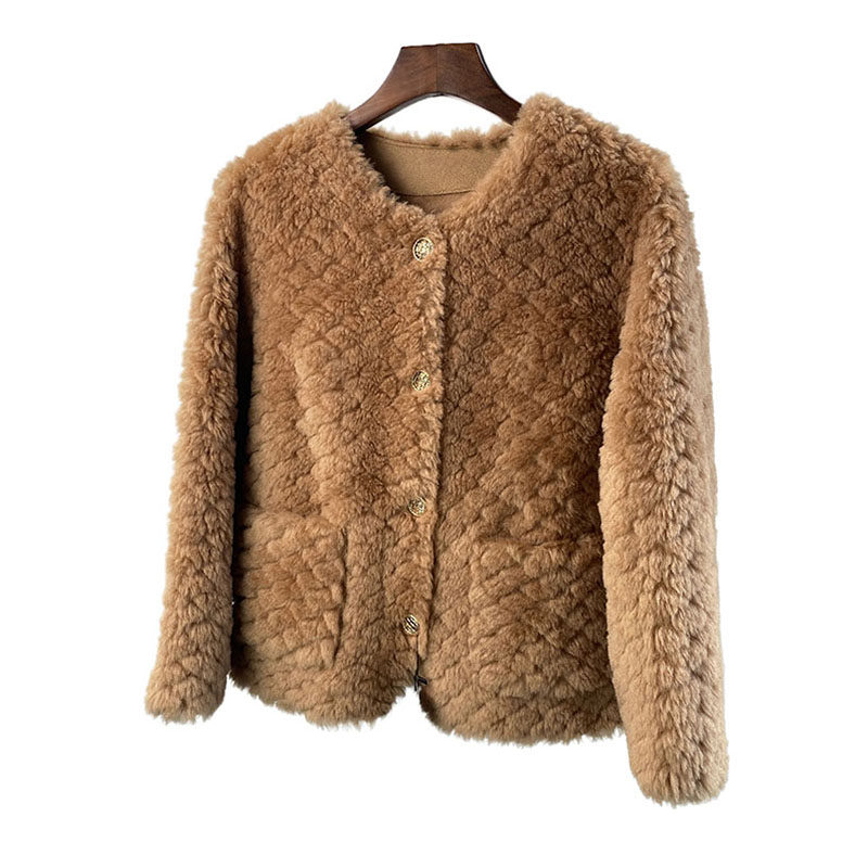📚 海宁2025新款剪花圆领羊剪绒外套女短款皮毛一体羊羔毛年轻款皮草