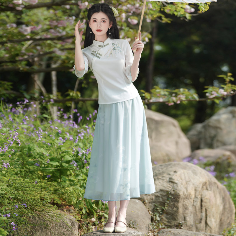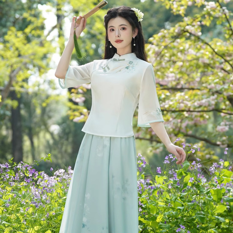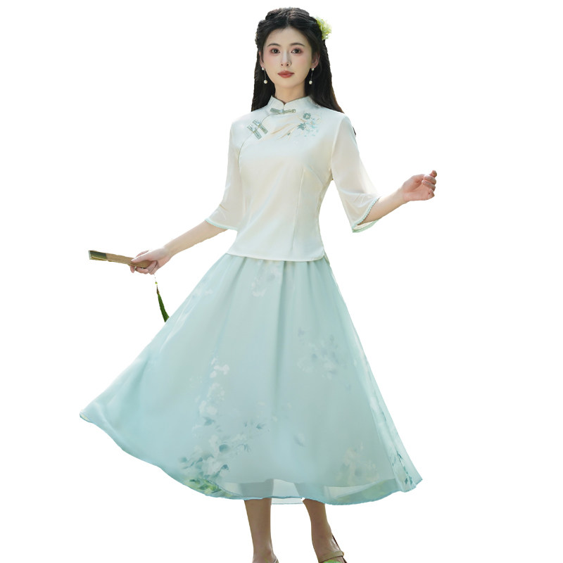 📚 新中式日常汉服套装裙女夏季年轻款国风唐装改良旗袍上衣禅意茶服