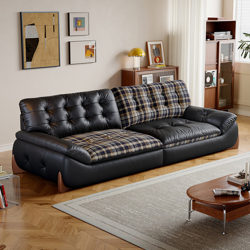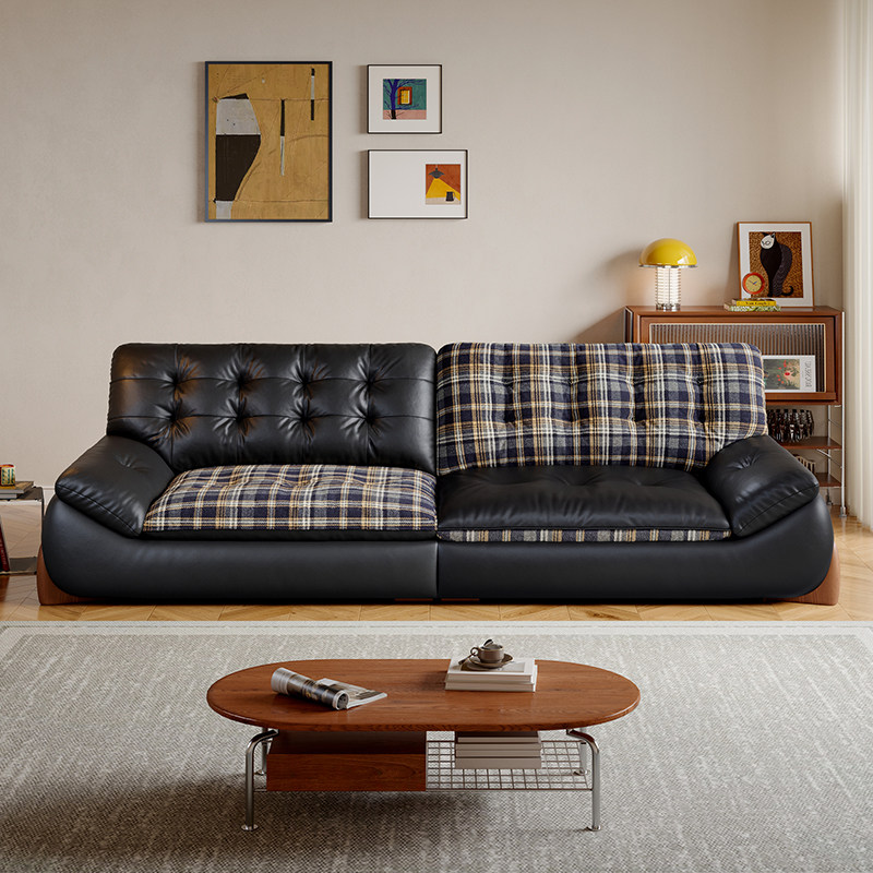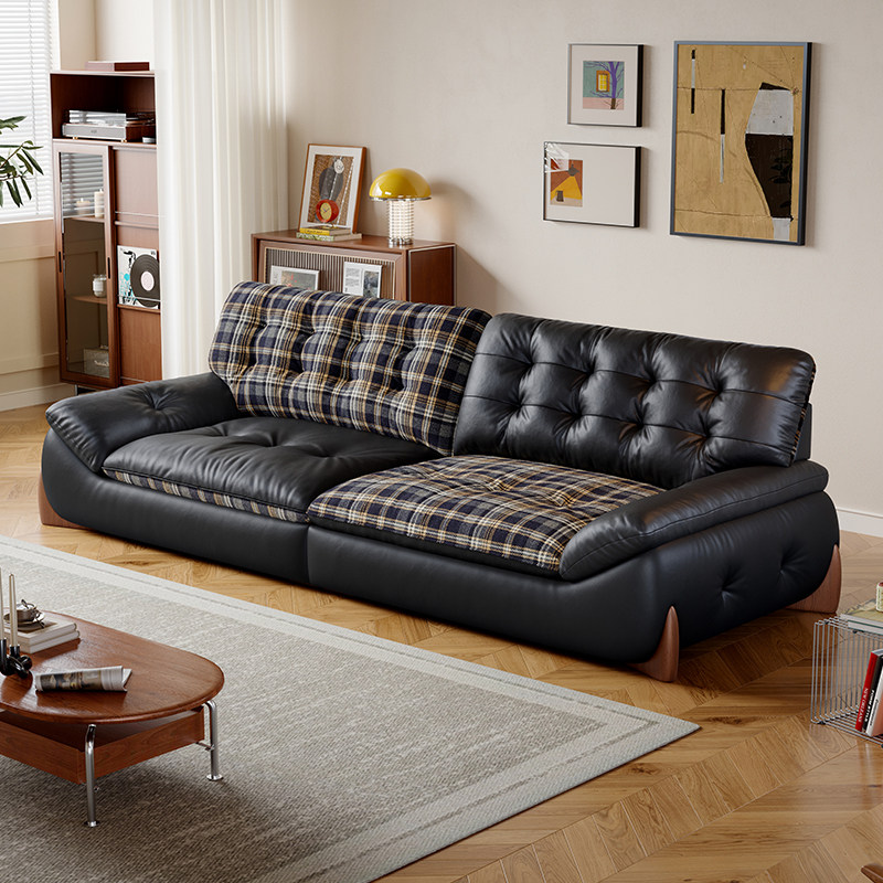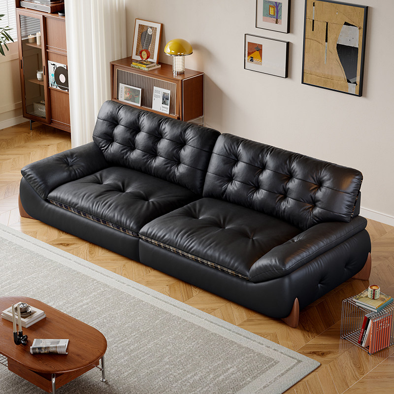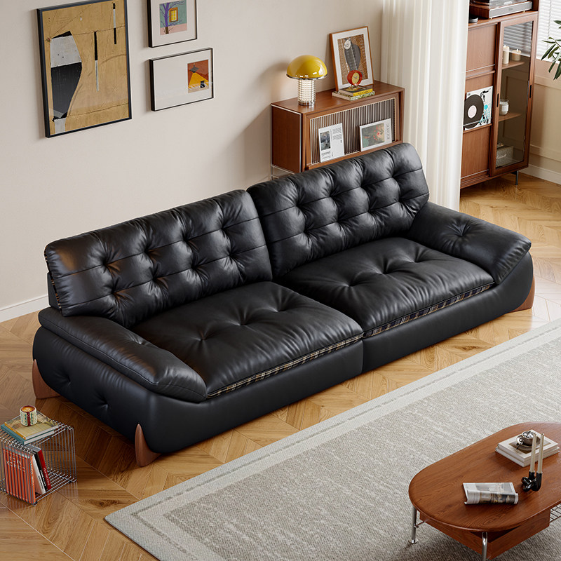📚 中古包豪斯风直排真皮沙发小户型客厅家用2026新款扶摇真皮沙发