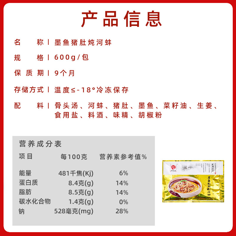📚 林结巴墨鱼猪肚炖河蚌600g餐饮饭店半成品私房菜宴席菜特色商用食