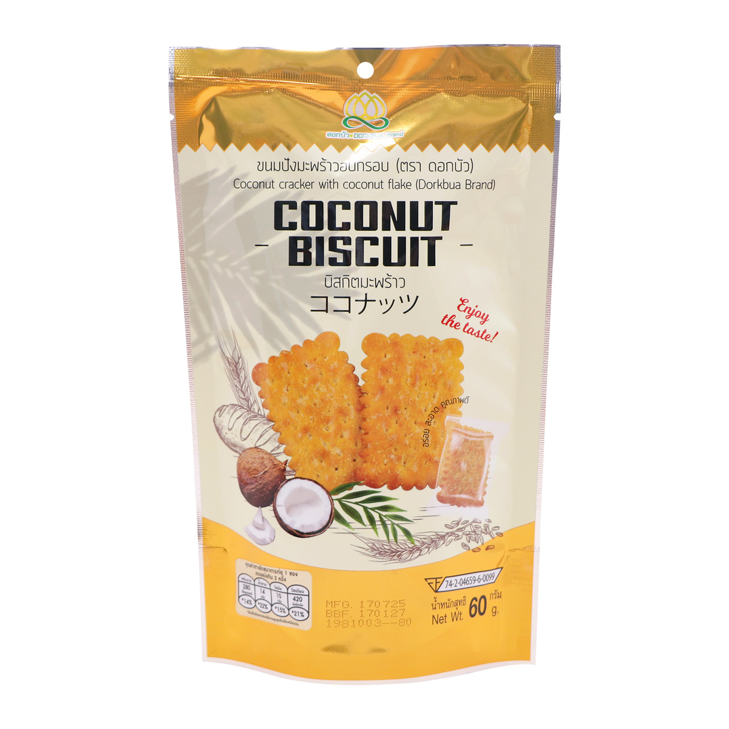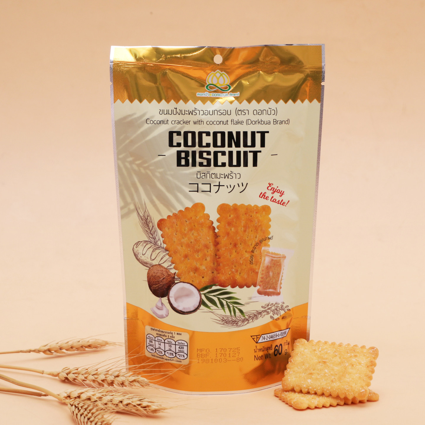 📚 泰国进口原装DORKBUA牌椰子脆饼干菠萝夹心饼干休闲零食下午茶60g