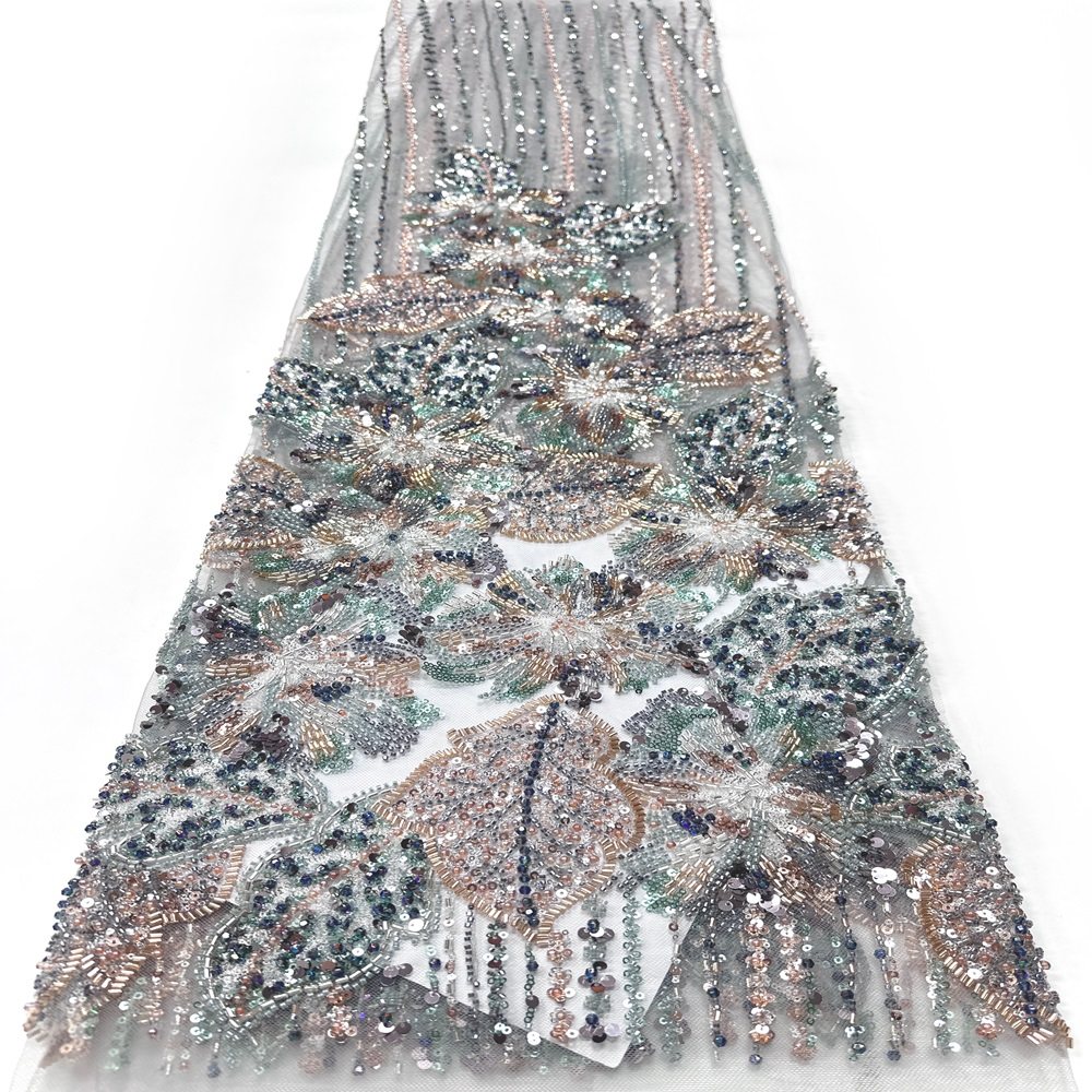 📚 重工钻石珠绣珠片刺绣亮片面料抹胸礼服晚宴风服装布料beads lace